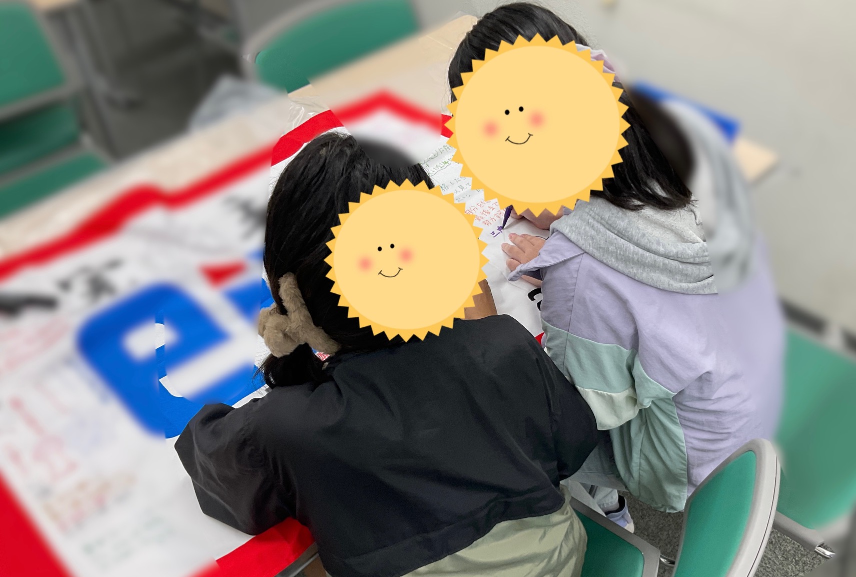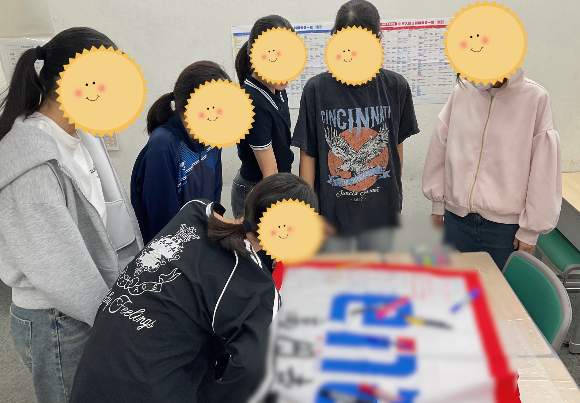 普段、真剣な生徒たちも、団結旗を作成する時はみんな何を書くか楽しそうに相談しながら作成していました。