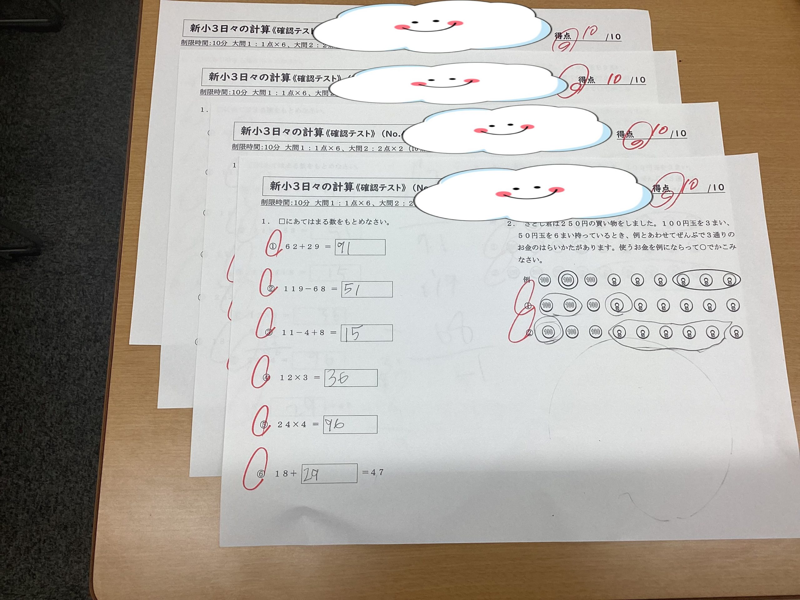 こちらは小3の小テストです。