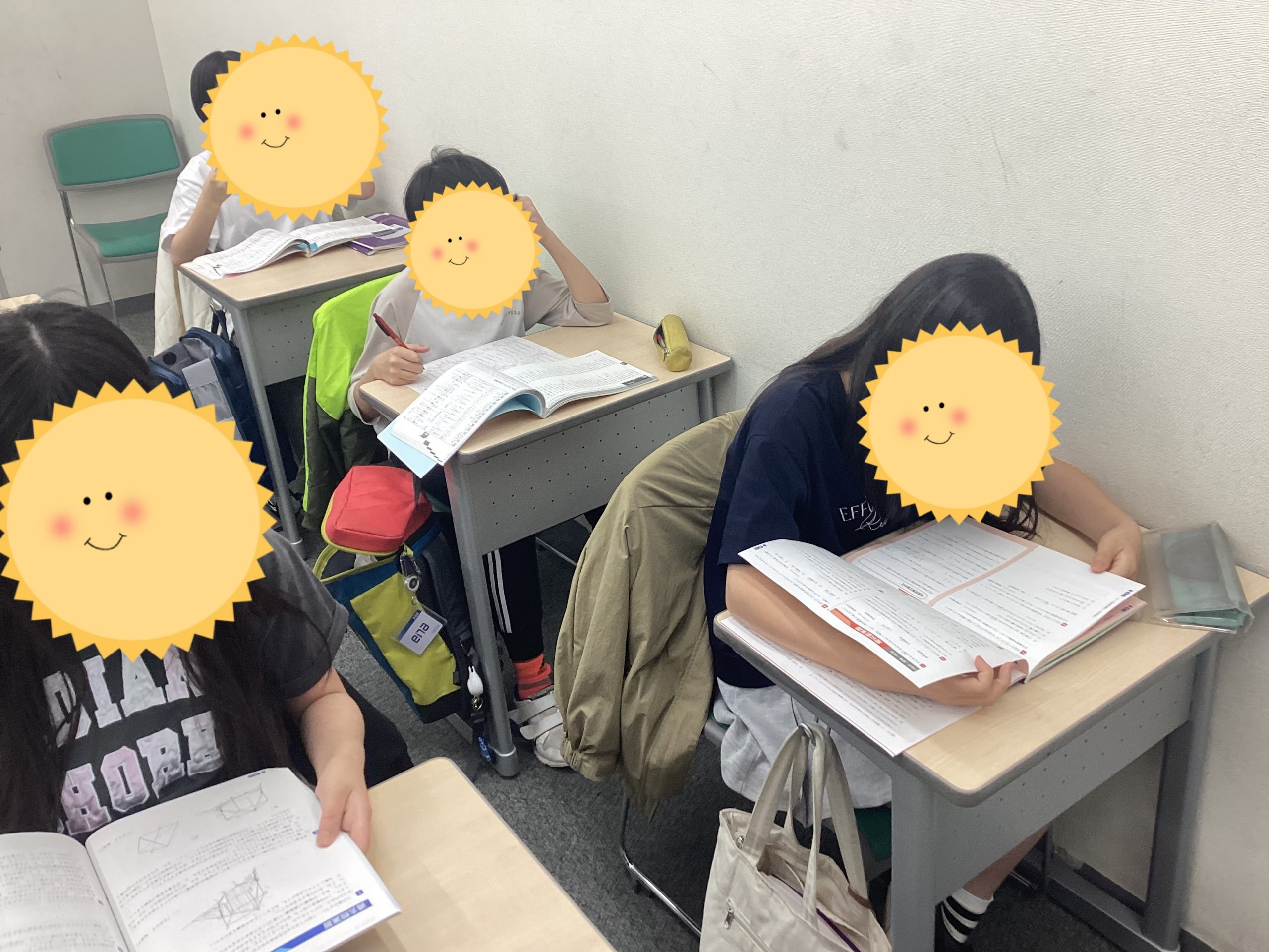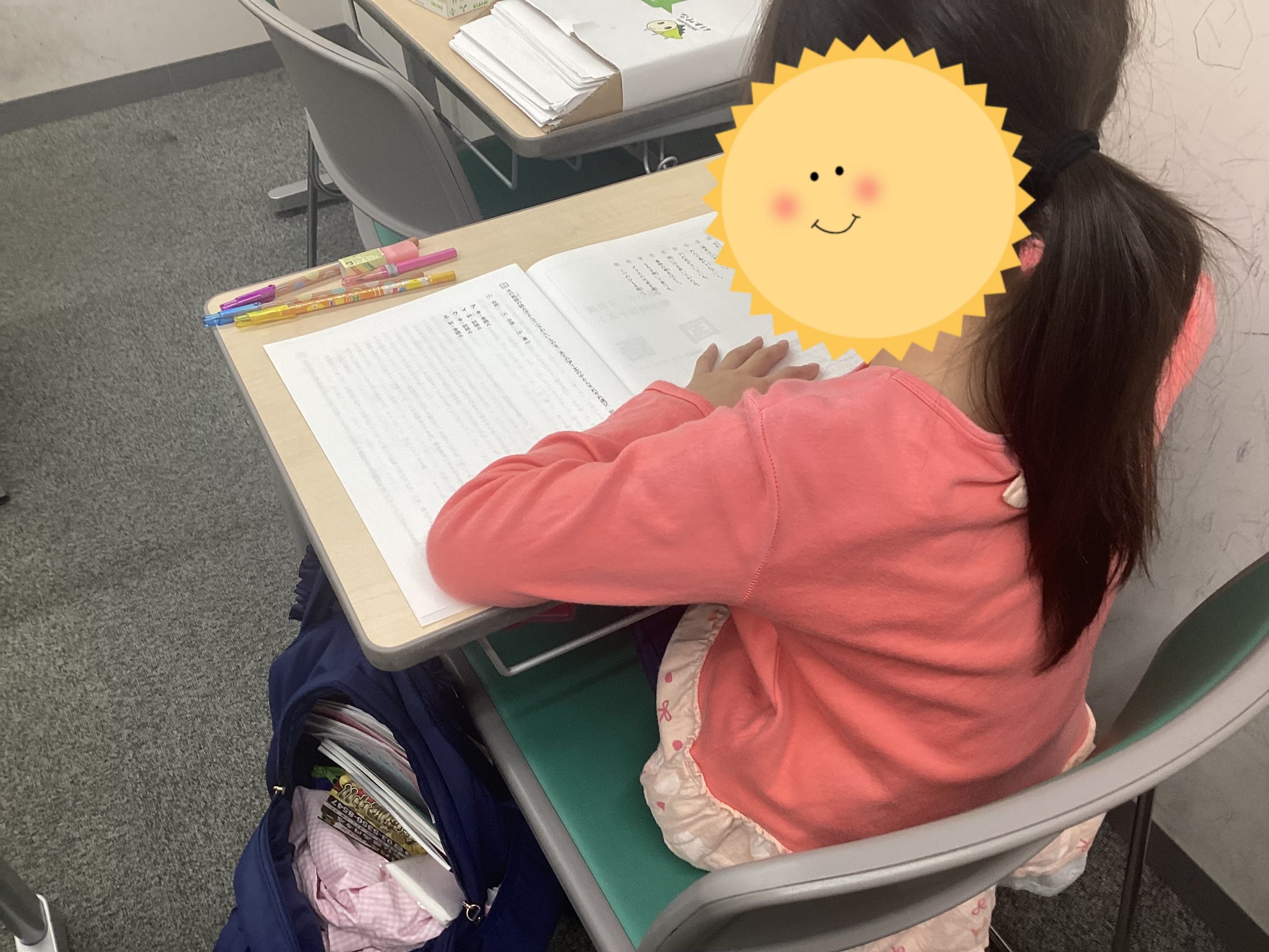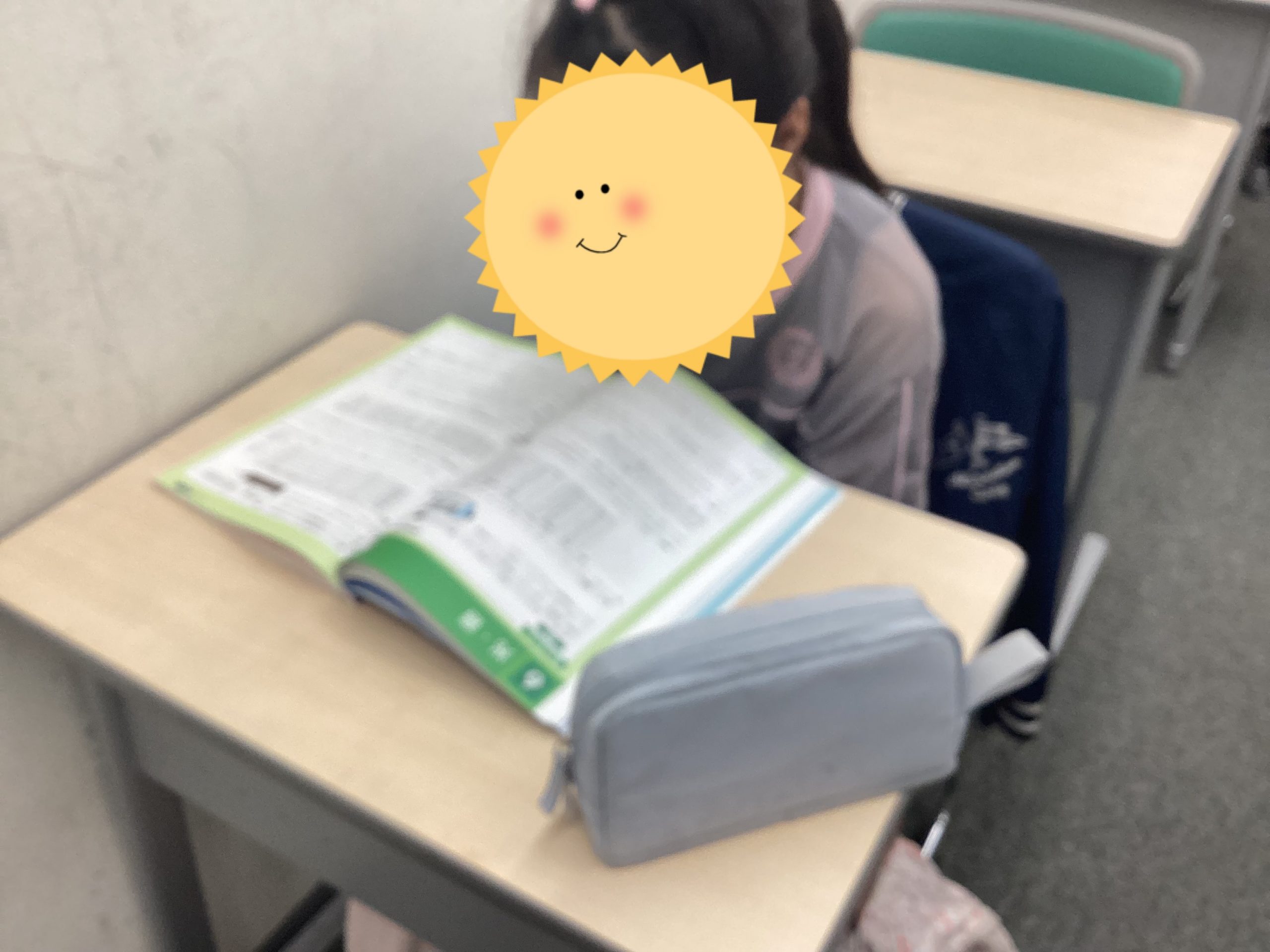 この写真を見てみると…机の上にテキストが置いてありますね…。
