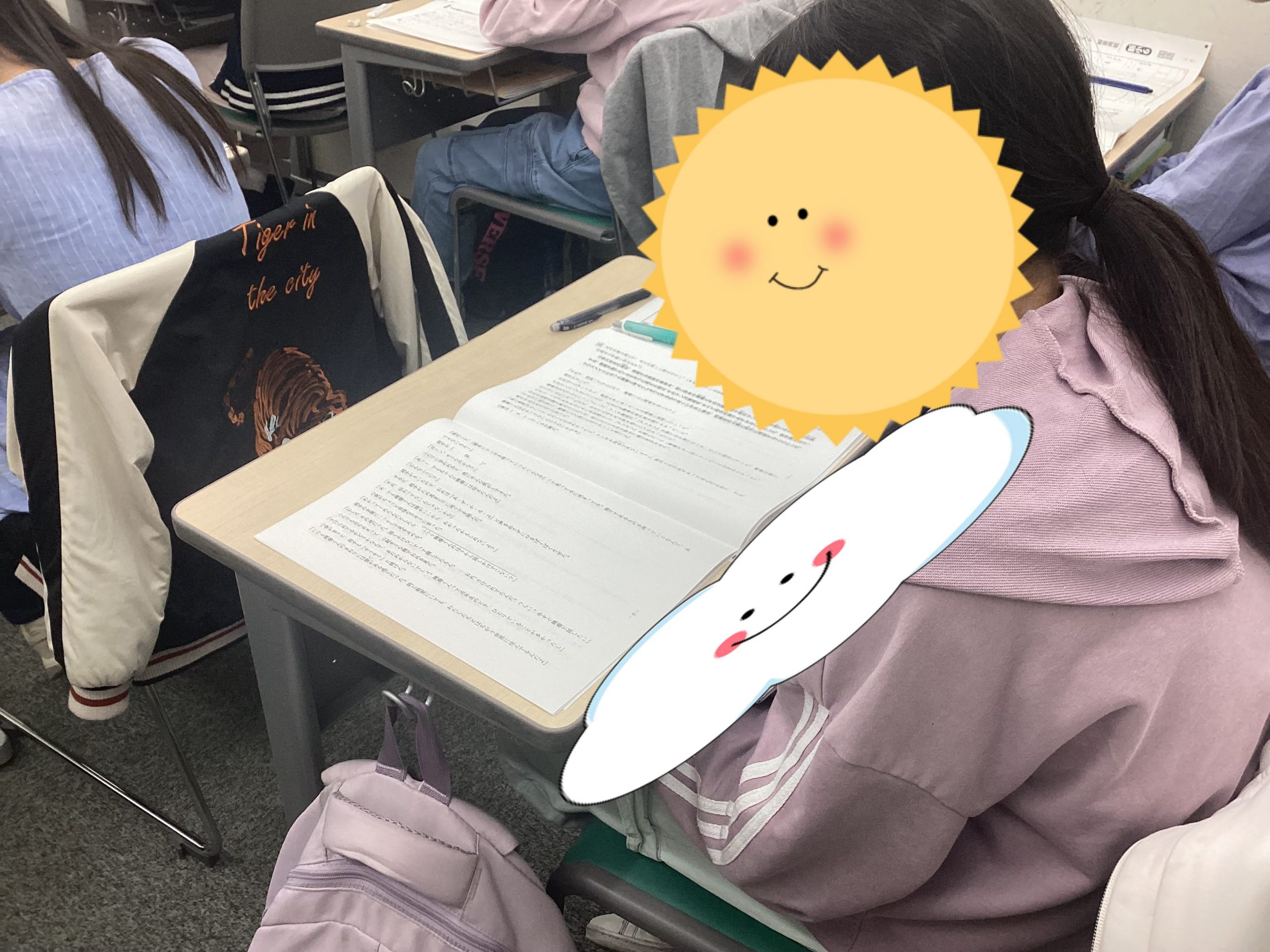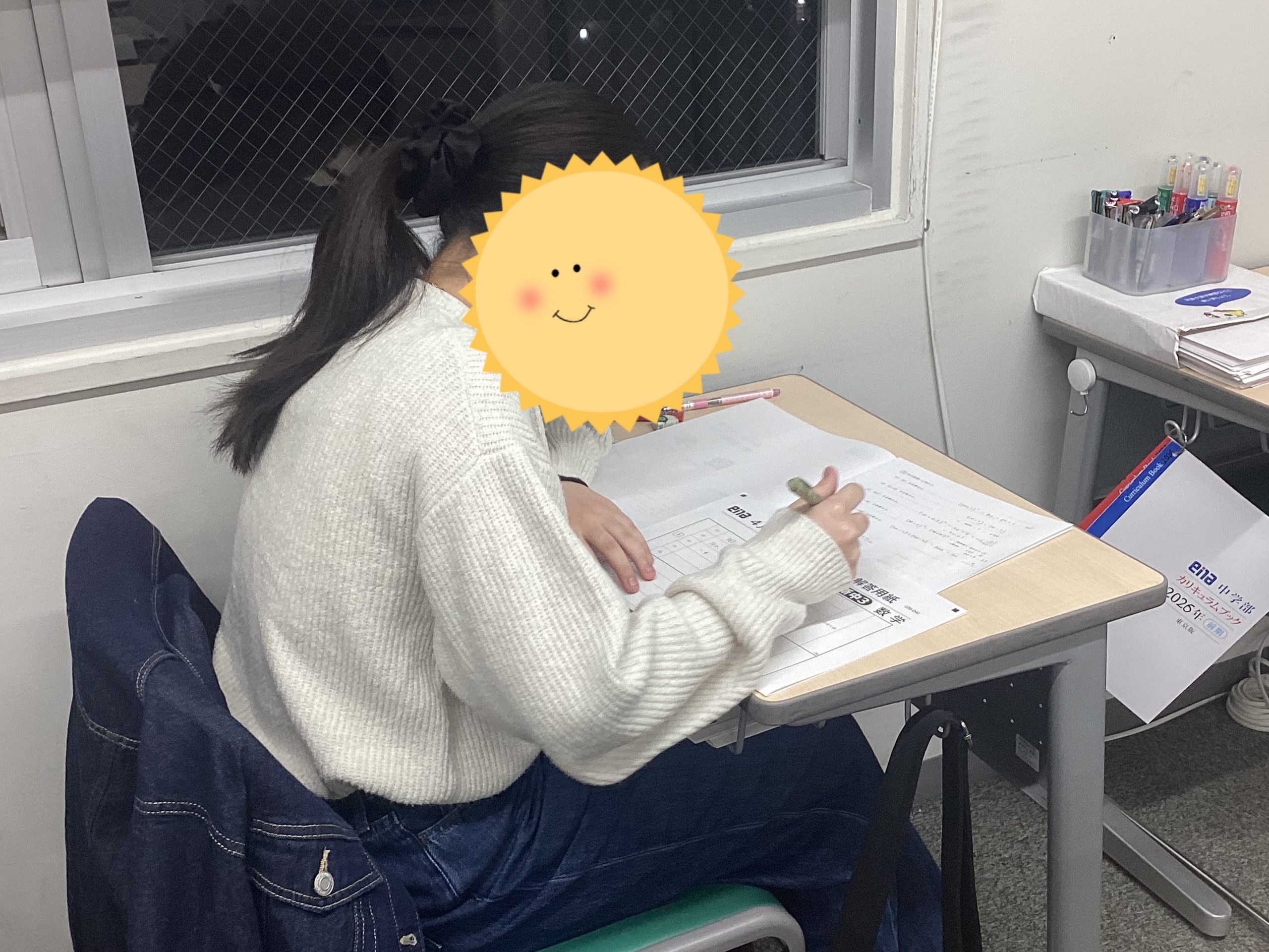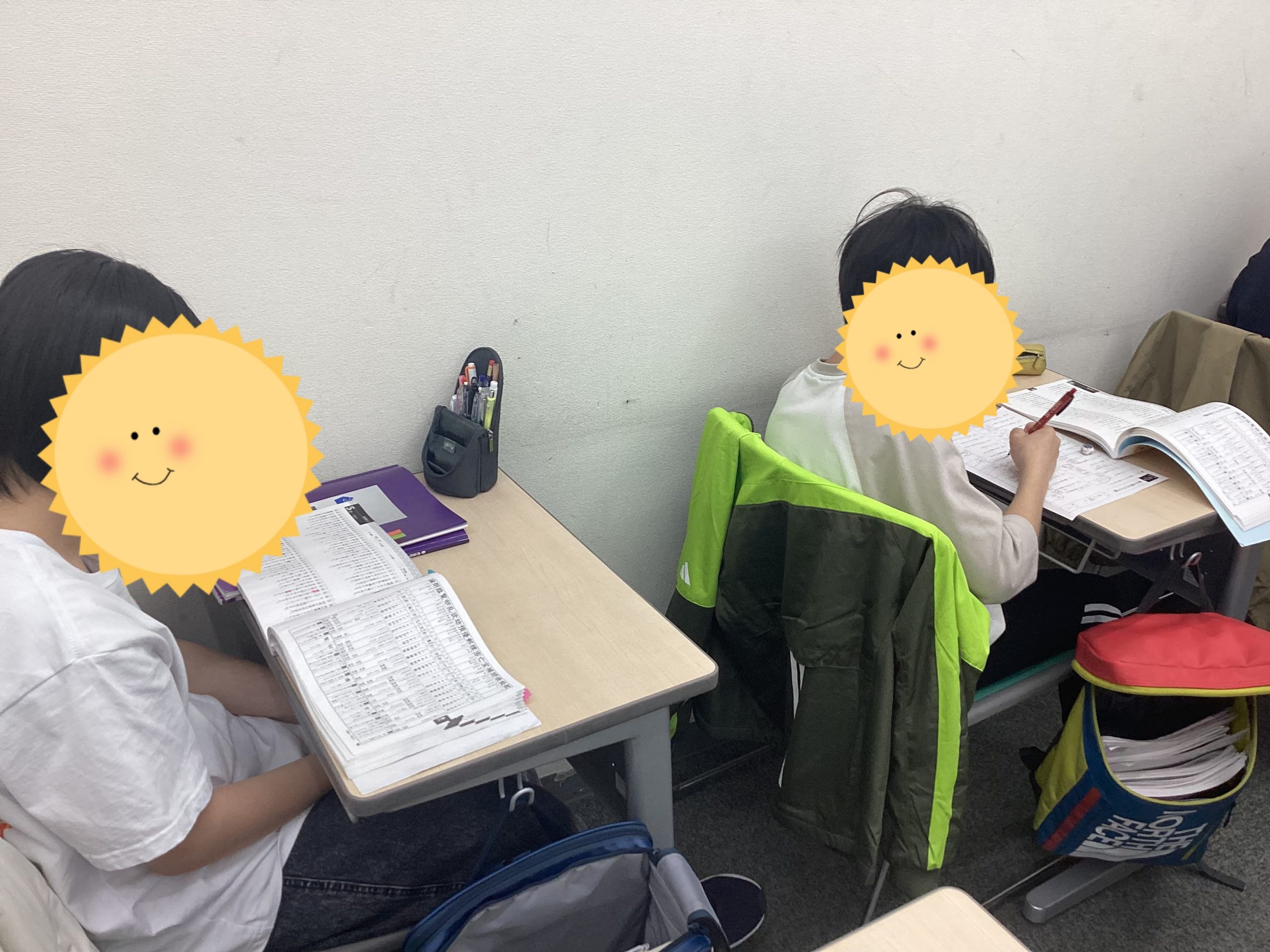 この写真を見てみると…机の上にテキストが置いてありますね…。