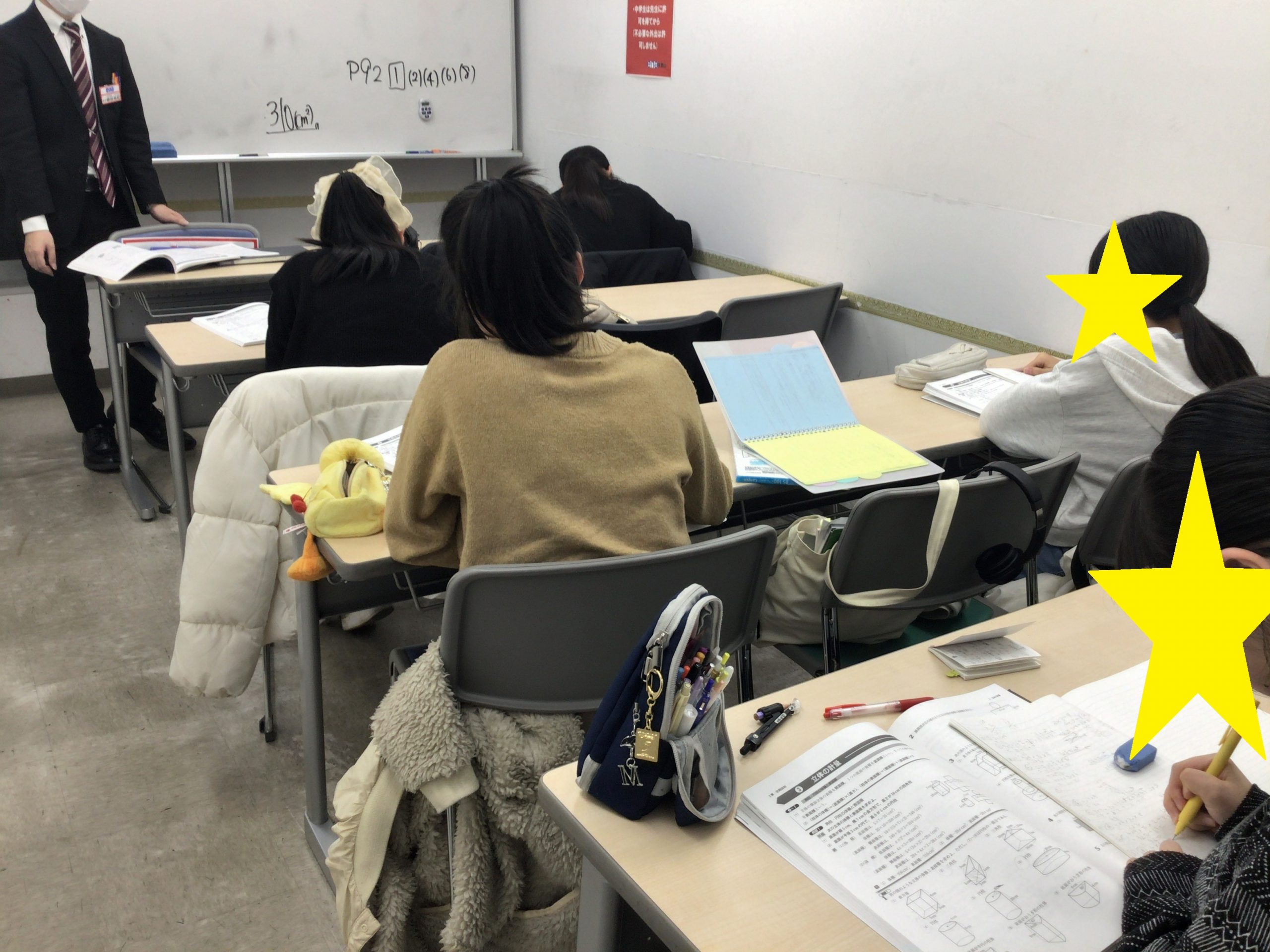 昨日は野村先生が、中2の小テストについて個別で話をしていました。修正して、進みましょう。
