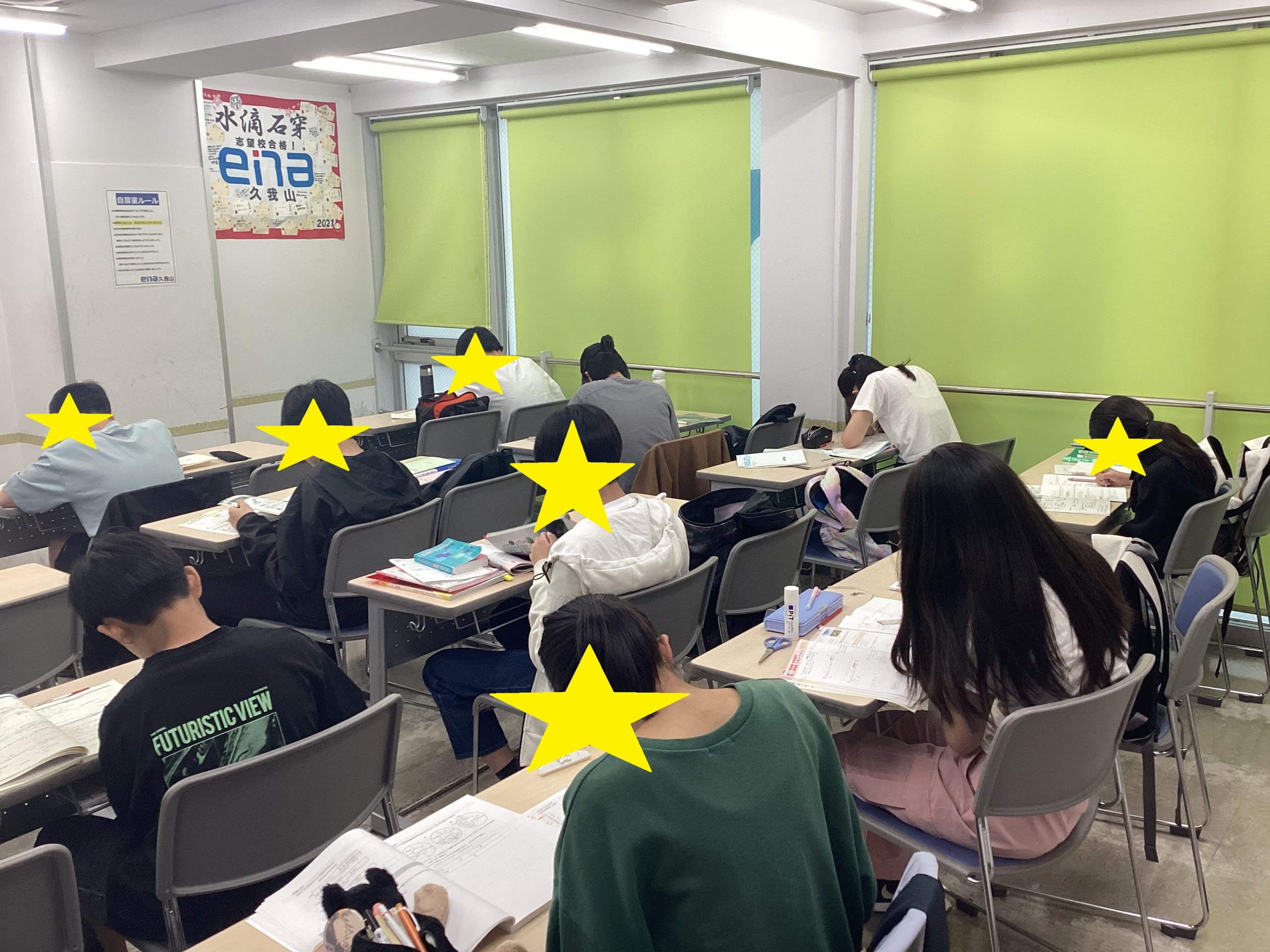 校舎に来て、勉強をしています。