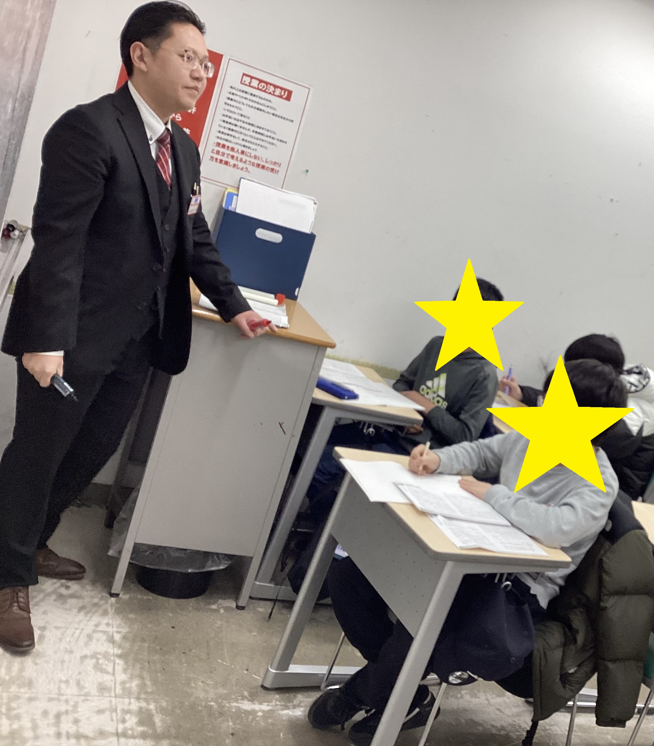 課題もたっぷり出します。本日、小テストがありました。満点でない場合は授業日でない日に来て、再テストです。