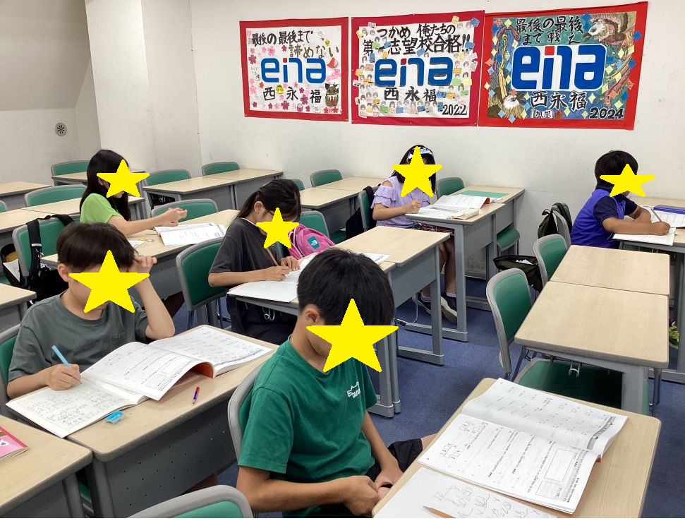 これは本日火曜日の様子ですが、午前授業だった小6生2人が14時過ぎから自習室で勉強していました。