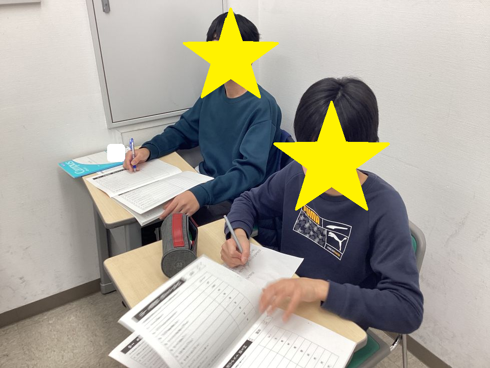 授業前早く来た生徒は熱心に小テスト勉強に取り組んでいました。