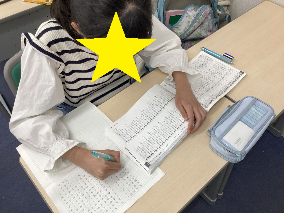 休み時間の中1生です。休憩時間後にある漢字テストの最終確認をしていました。