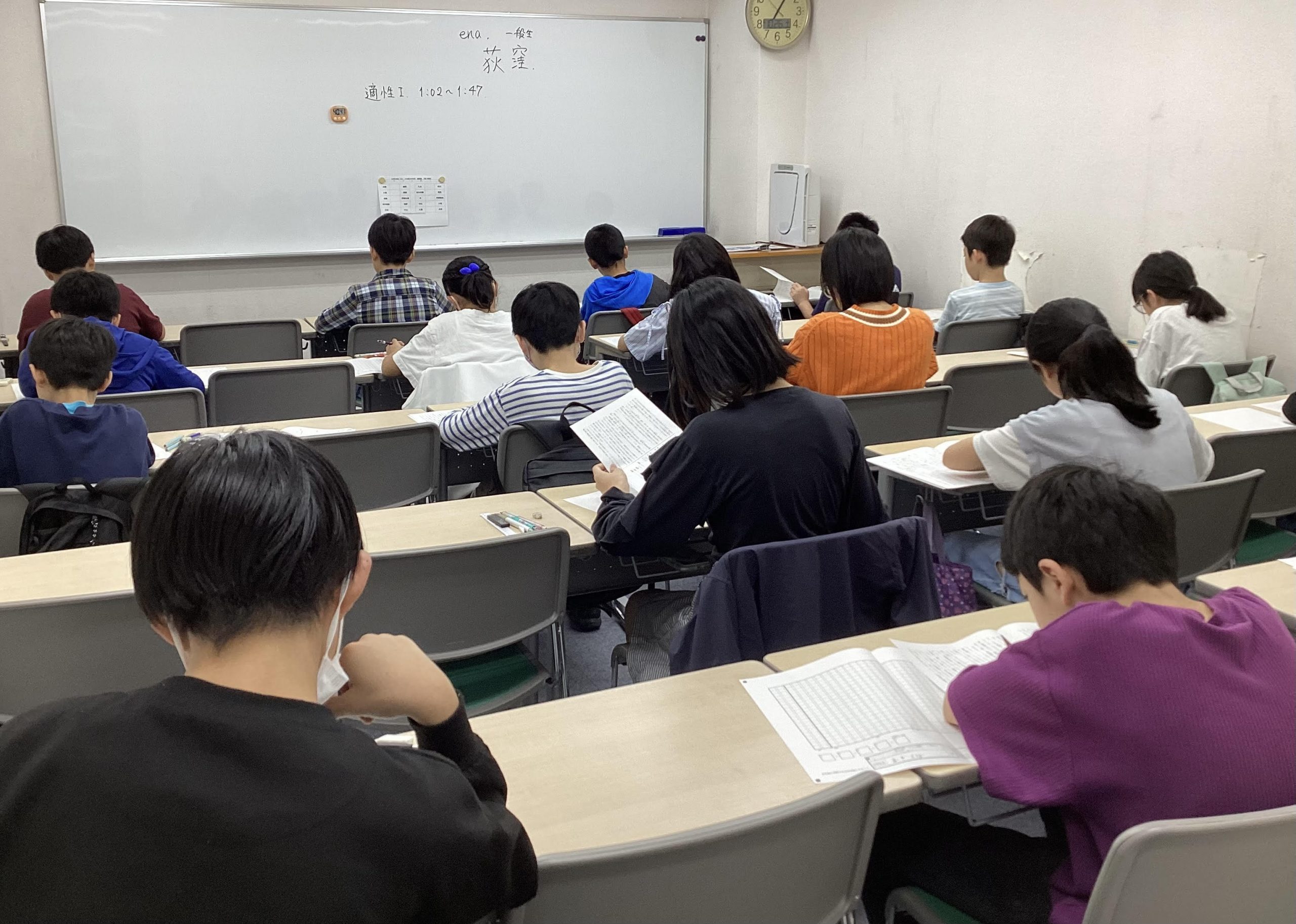 ena生も一般生もたくさん集まっての模試です。