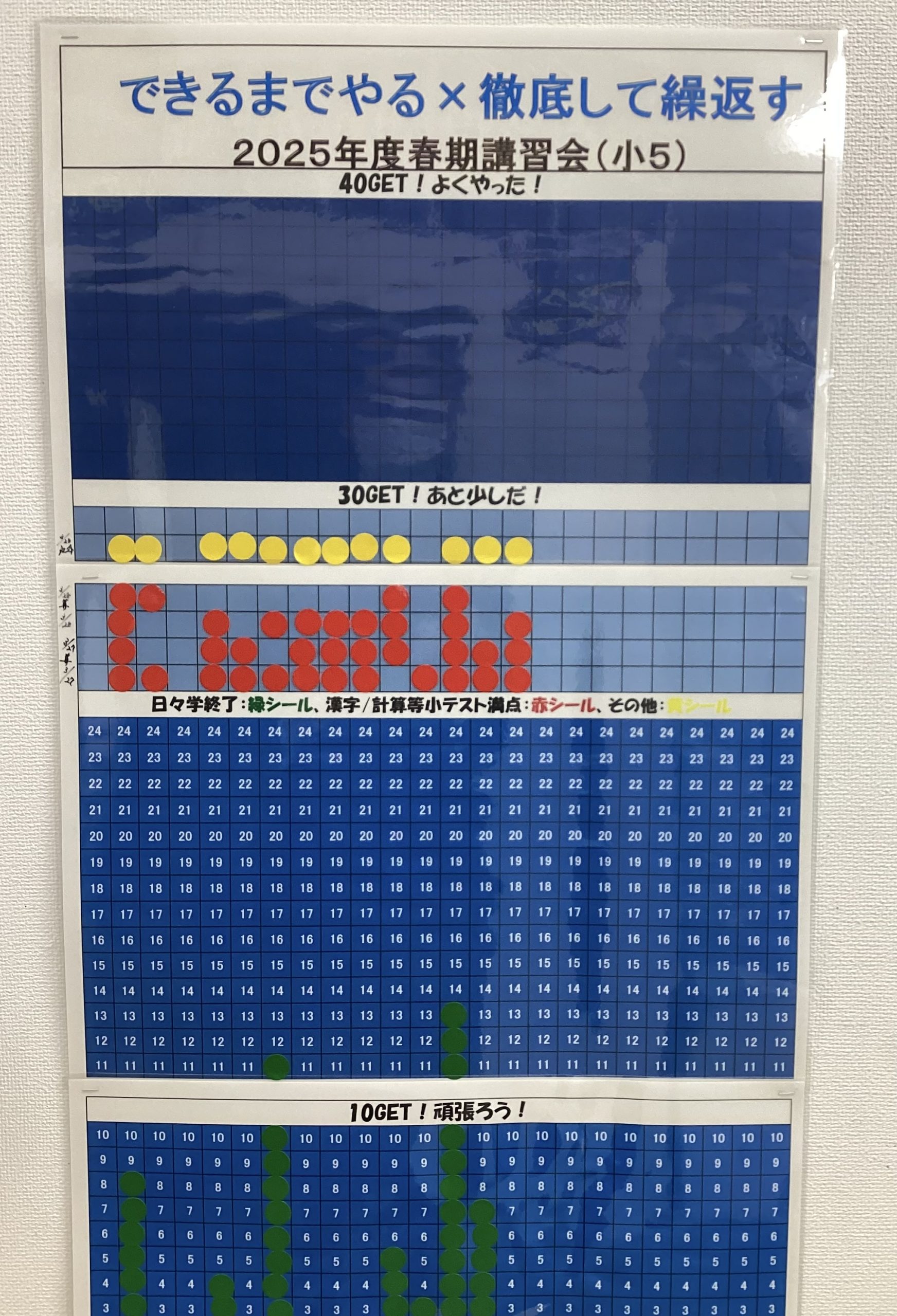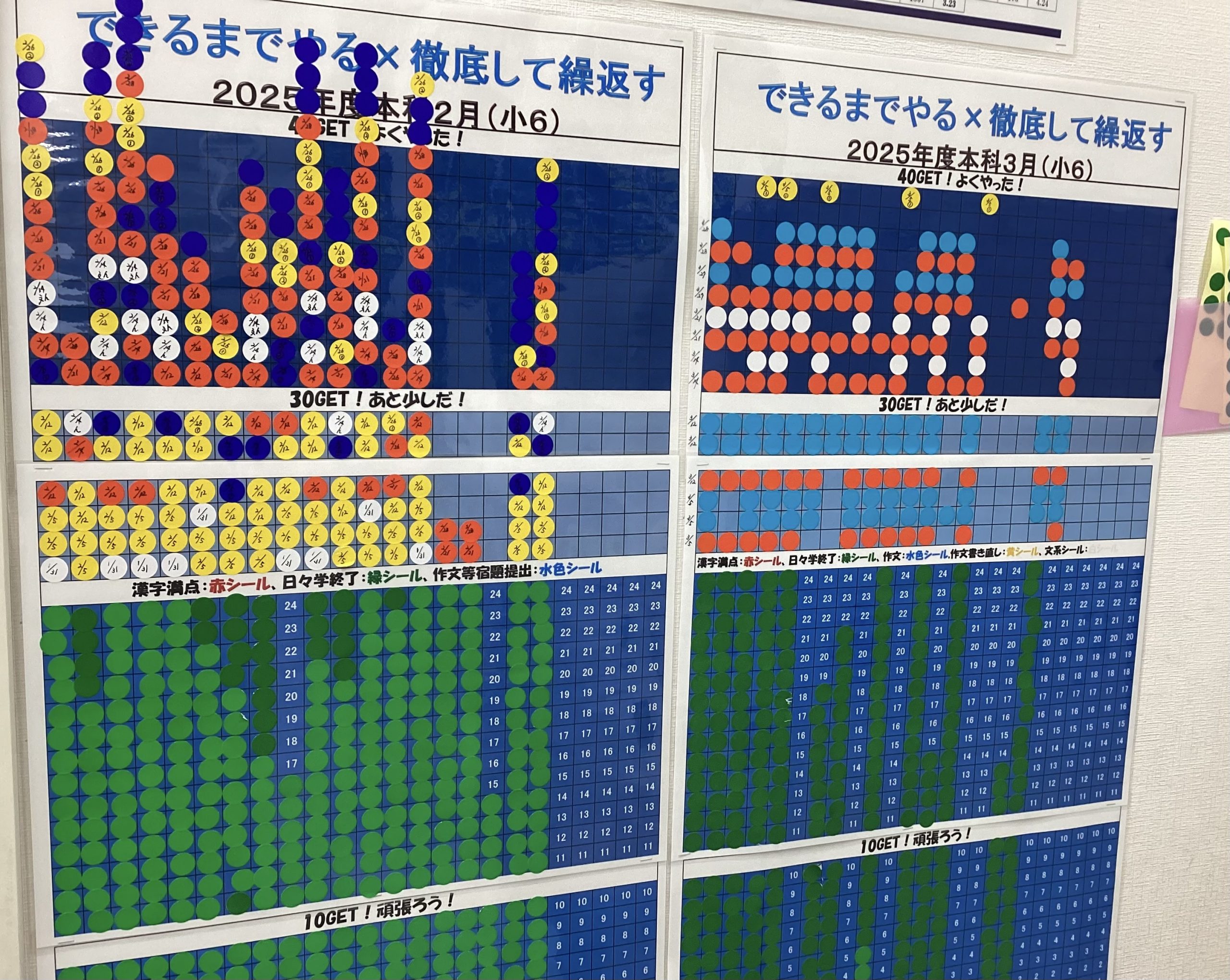 「小テスト」や「日々の学習」の達成表で、2月から始めています。
