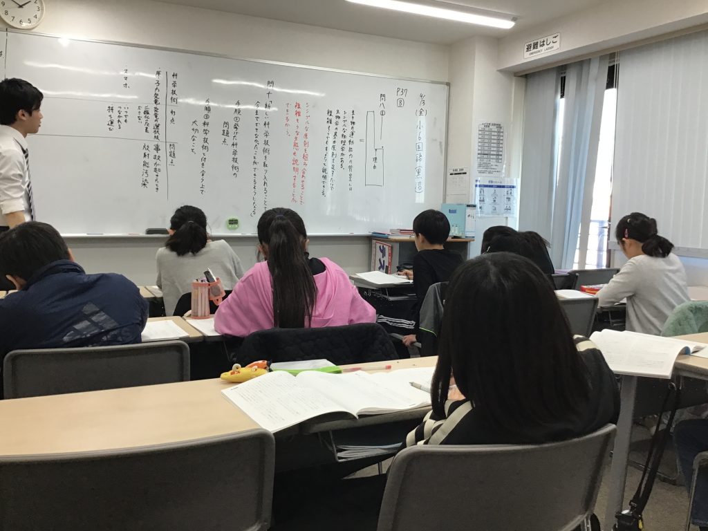 また、中学生英語でも単語や文法事項の確認時にガンガン生徒たちに質問をぶつけて回答を促しています。