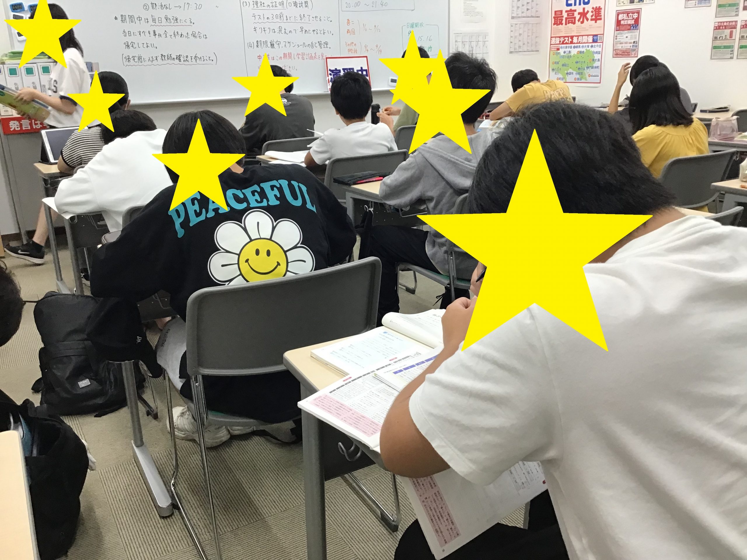 自習室は連日中学生の熱気で溢れています。