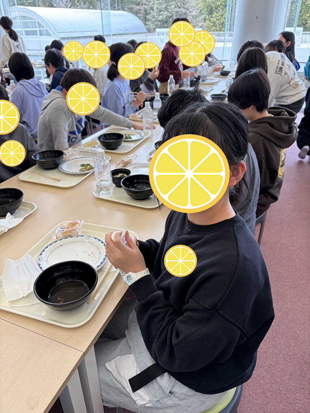 食事中は席が近い生徒同士でおしゃべりができ、他校舎の生徒たちと仲良くなれます。