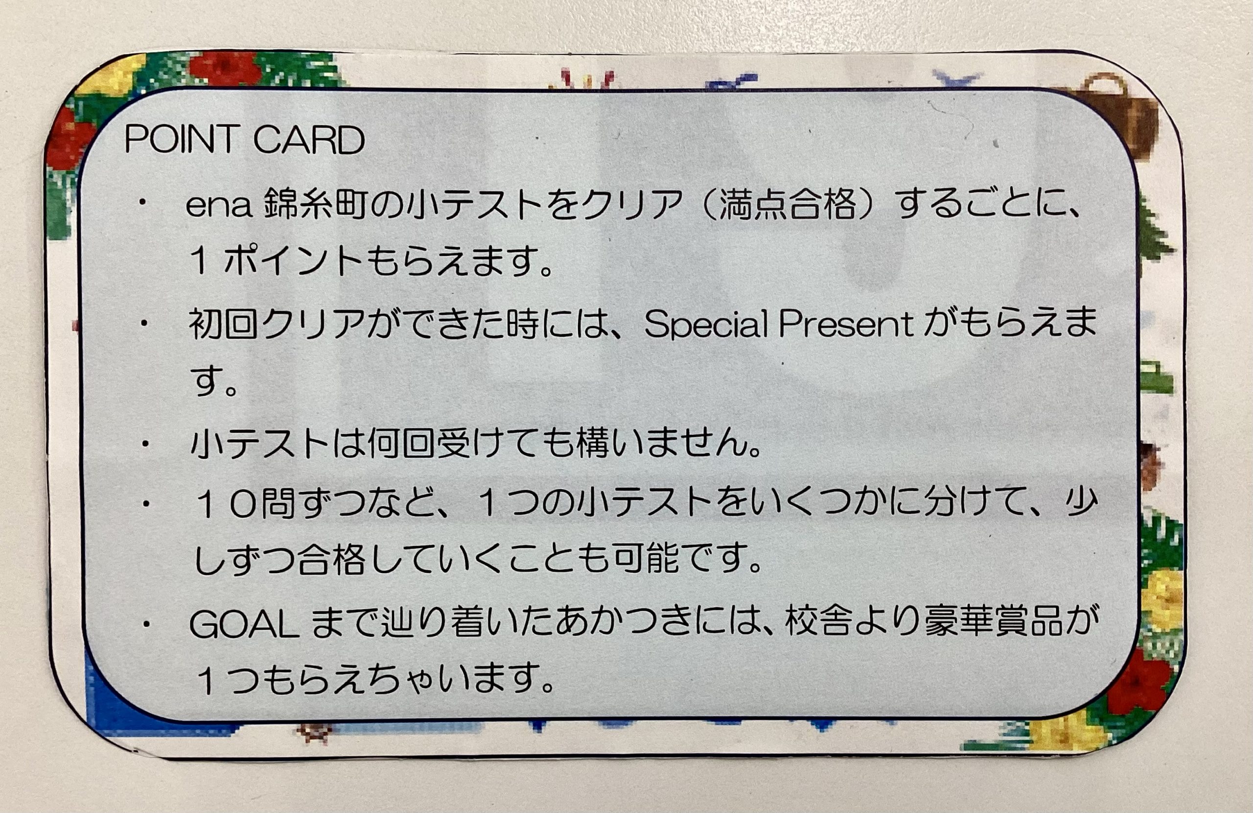 オリジナルPoint Cardで確認テスト徹底@ena錦糸町