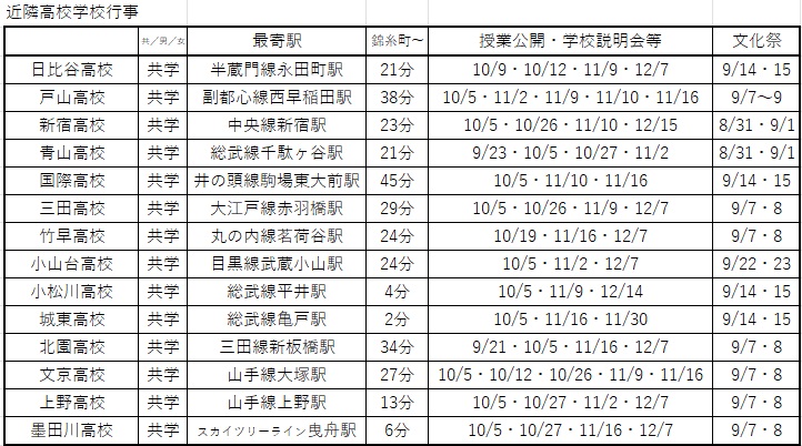 高校の学校行事予定