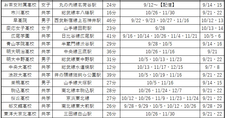 ※参加可能対象者の範囲・予約の要不要・持ち物等、詳細は、各学校のホームページをご覧ください。