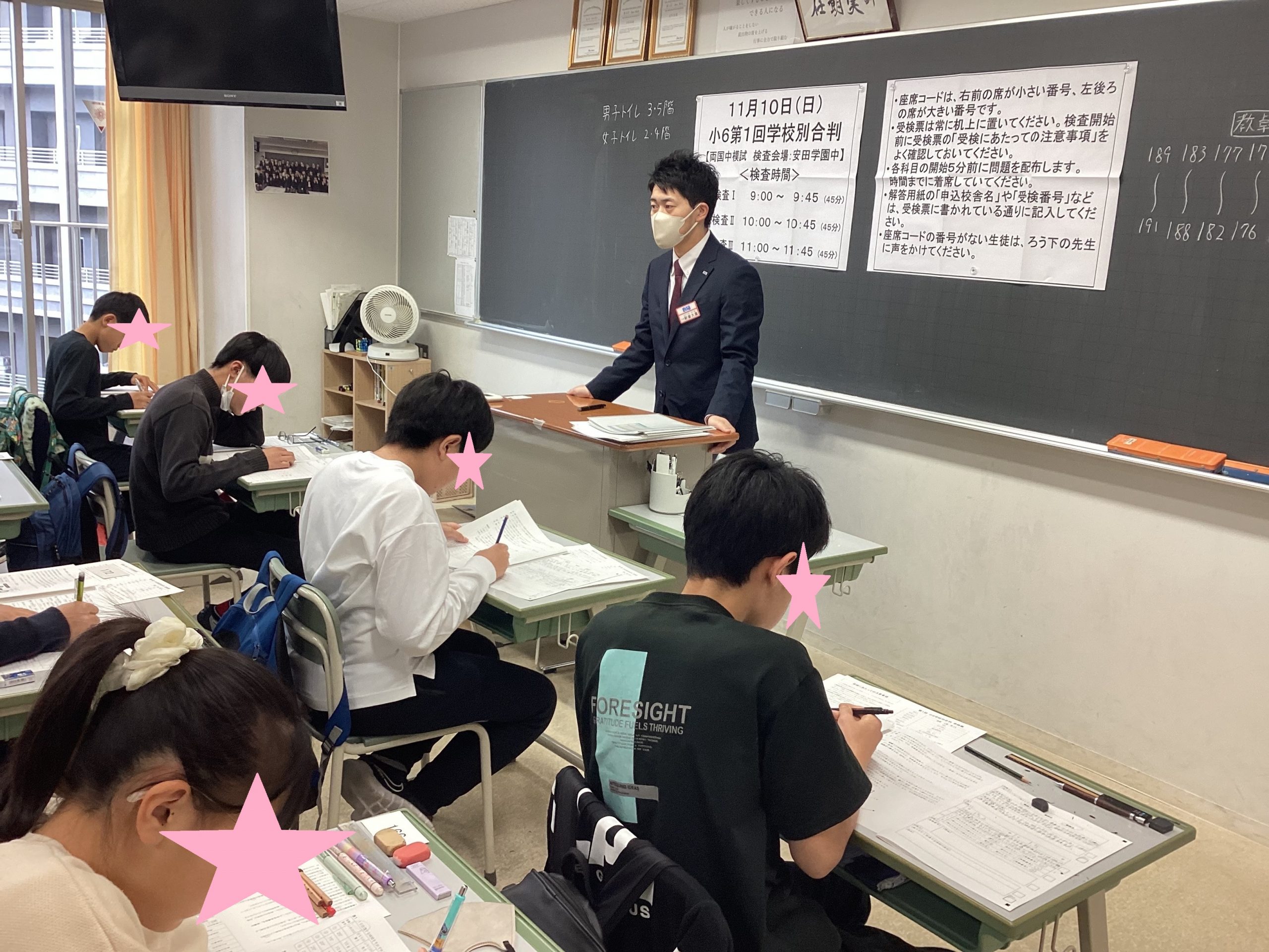そして、同じ日の日曜日の午前中は安田学園で第1回都立中学校別合判(都立 両国中の模試)が行われました。