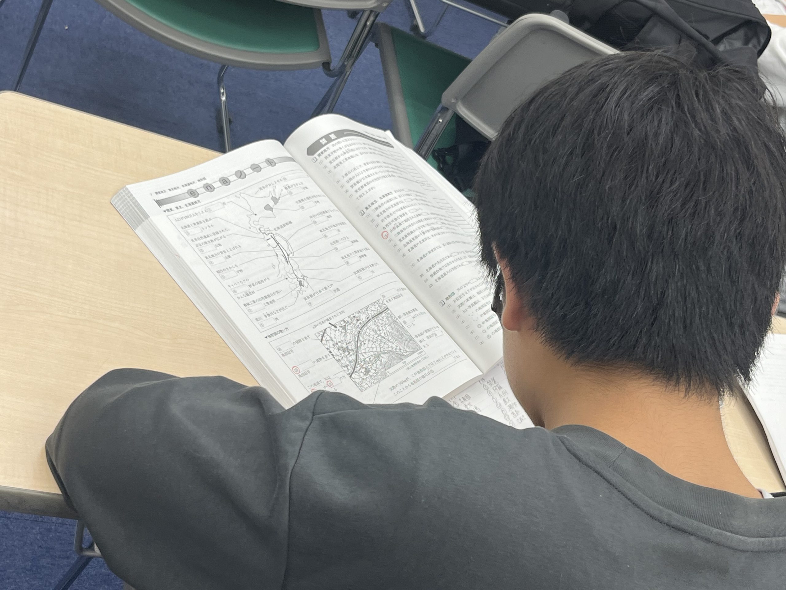 中3生は明日が最終日ということで、社会の基礎知識の暗記の追い込みをしています。