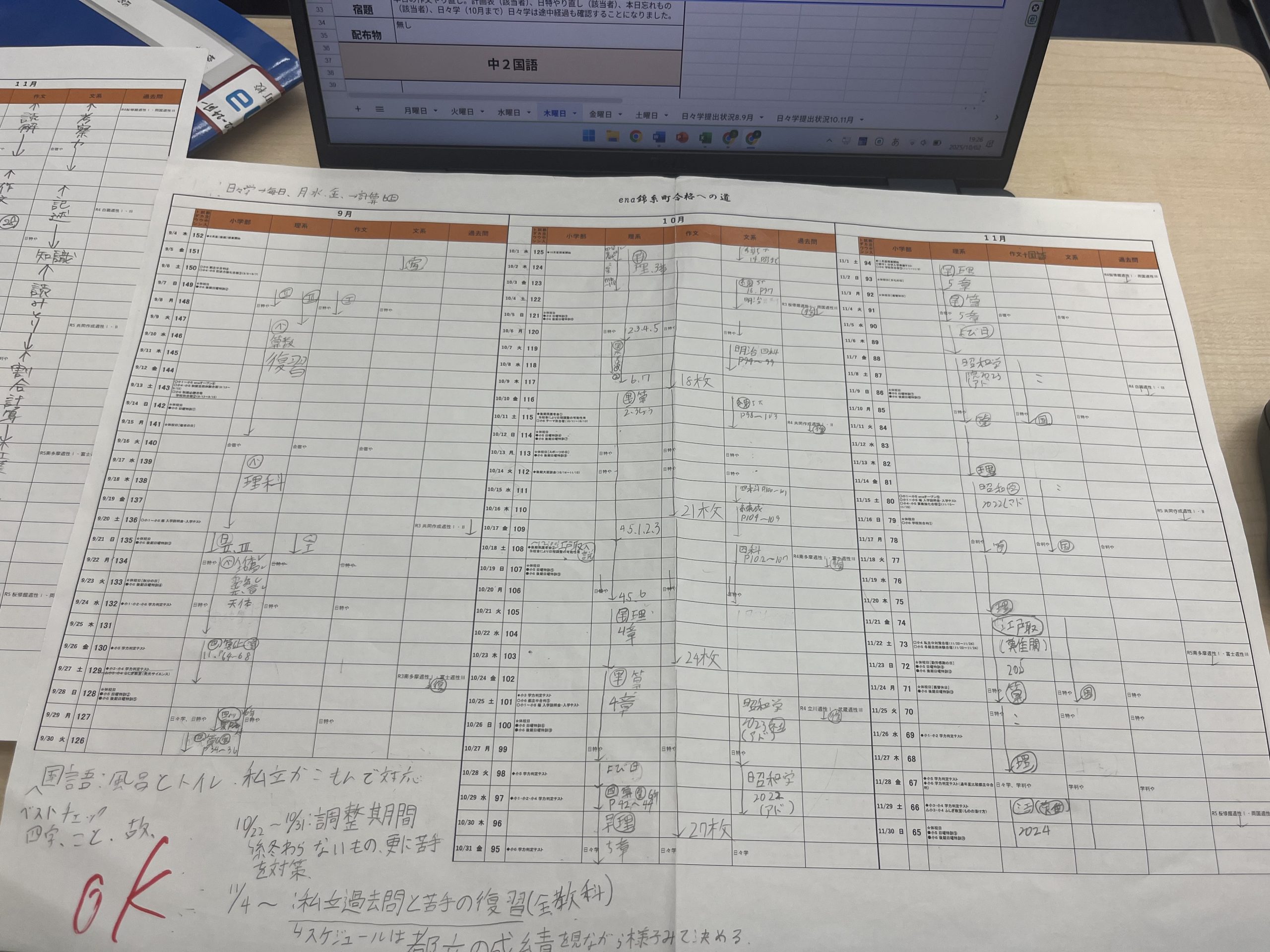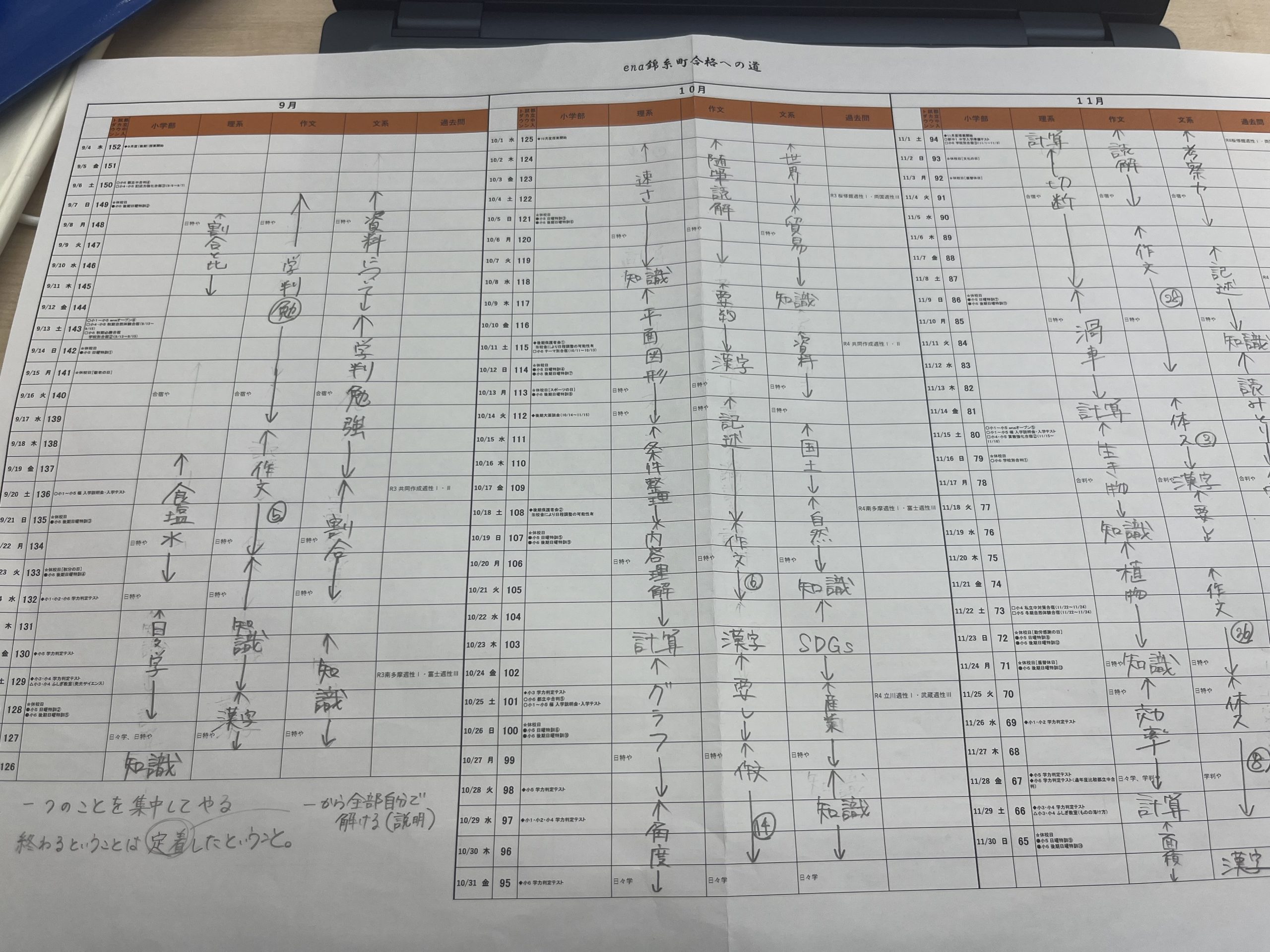 受験日までの個別課題の計画が進んでいます。9月は入試演習の時期ですが、同時に前期にやり残した、定着していない単元、苦手分野を復習していかなくてはなりません。それをこちらで追いかけます。