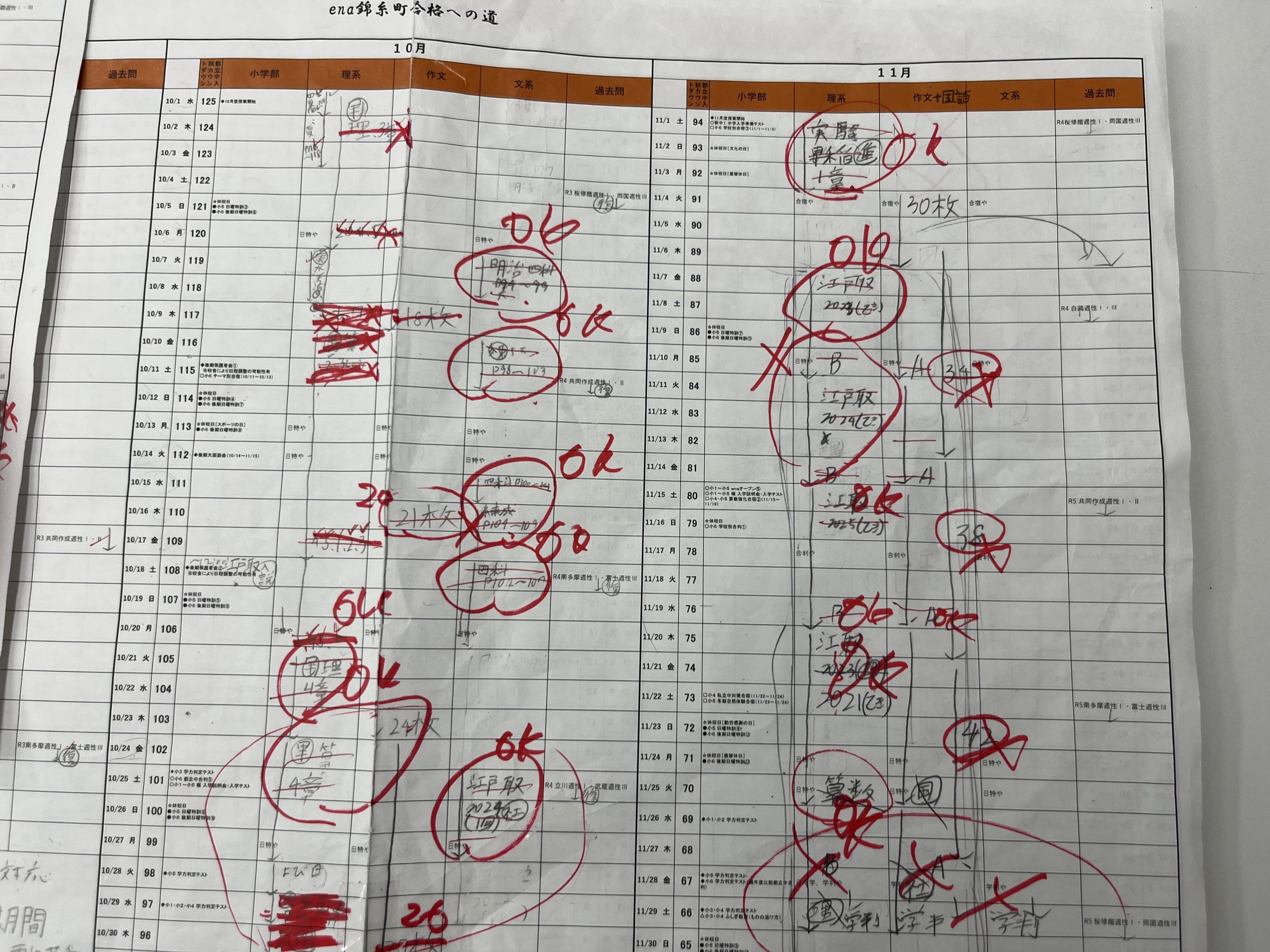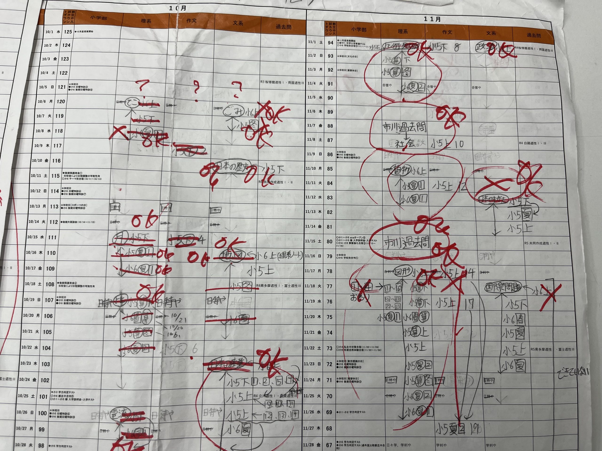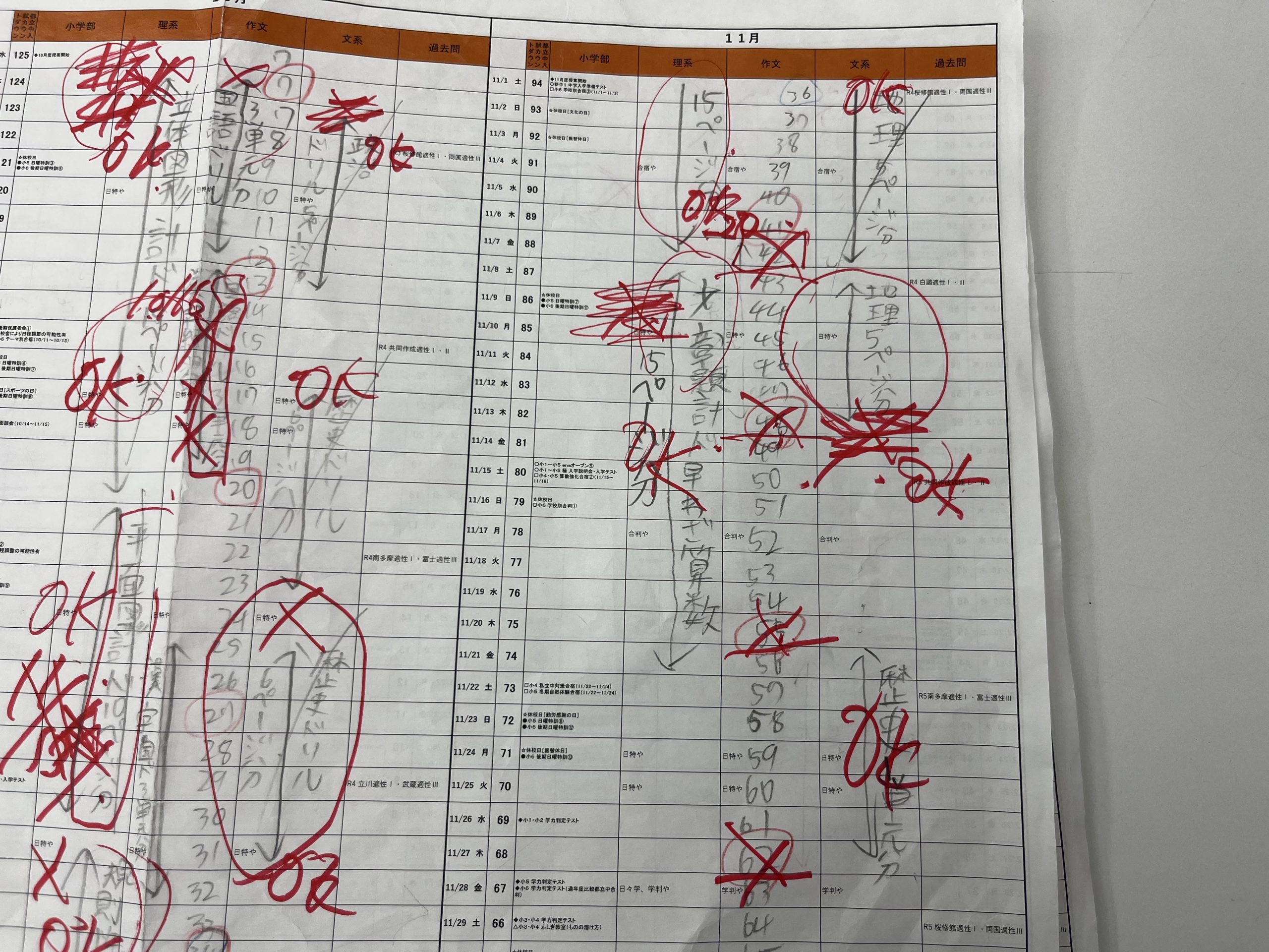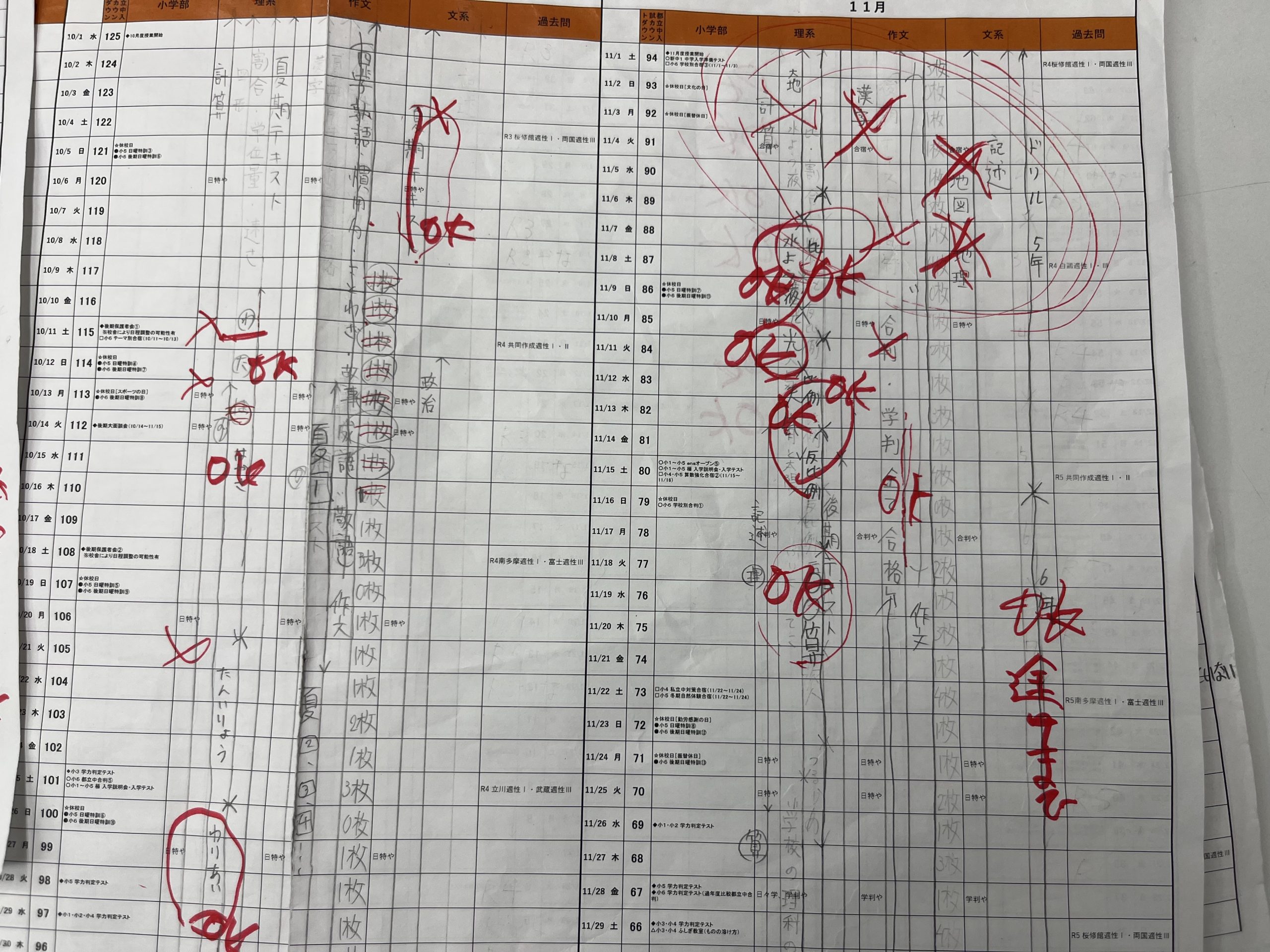 こちらは生徒それぞれの学習計画の点検です。計画なので100%とはいきませんが、上々の完遂状況です。体調を崩していた生徒で遅れている部分はありますが、キャッチアップできます。しっかり追いかけます。