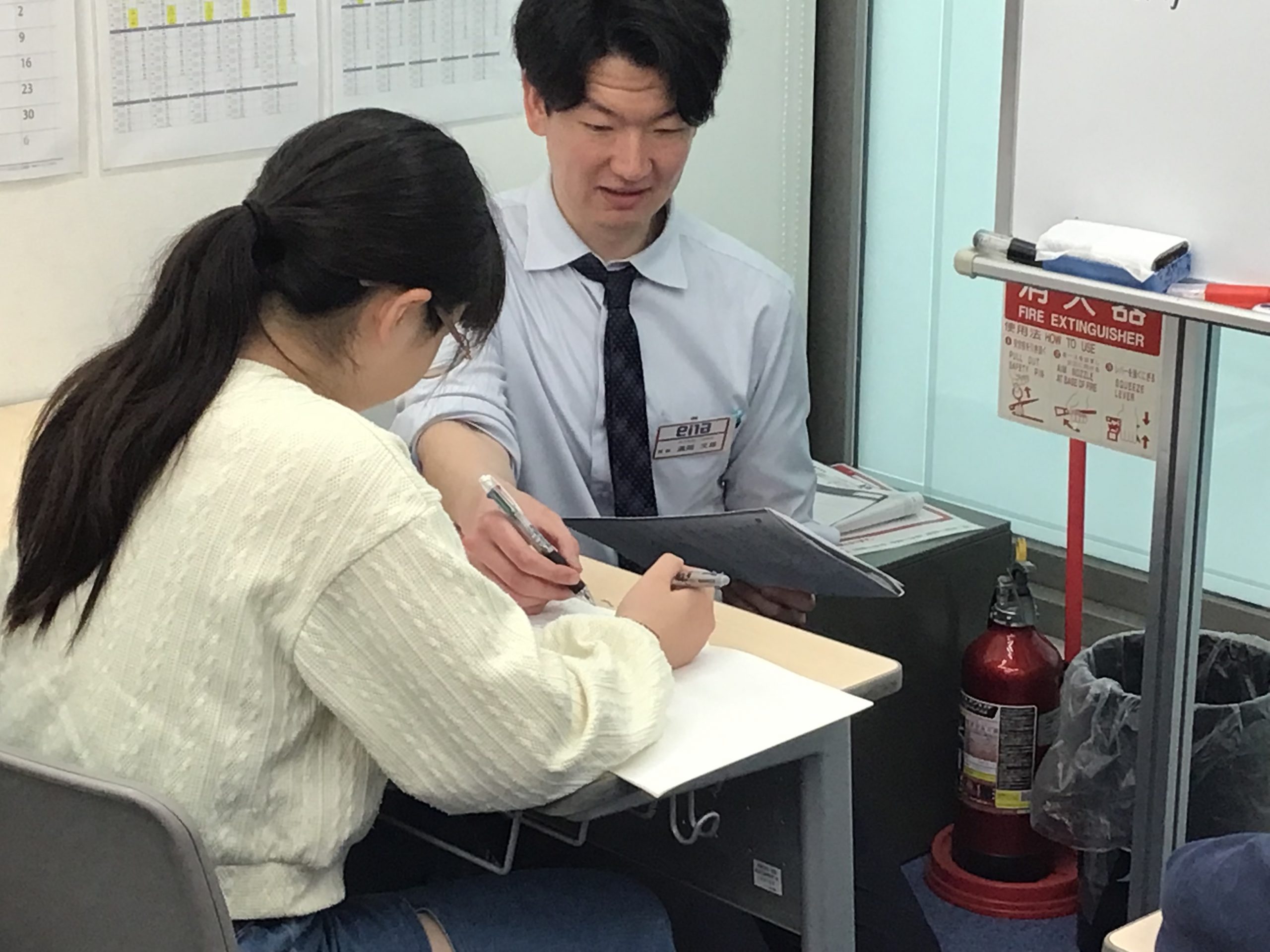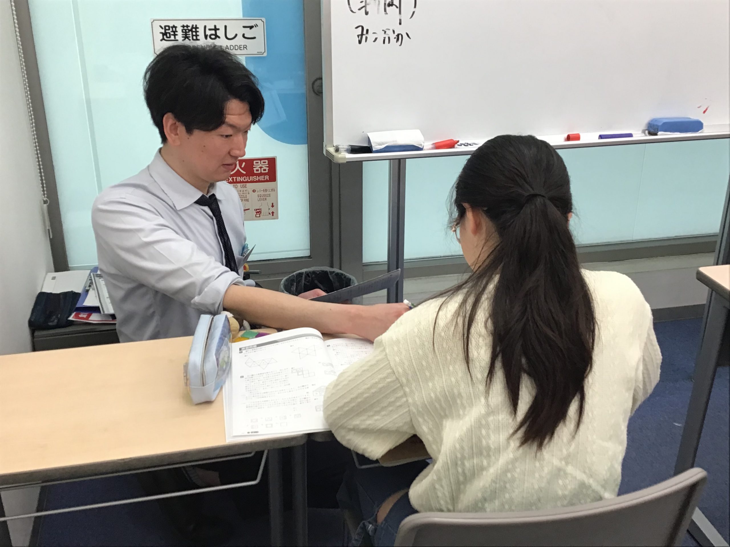 校舎に新戦力(専任(理系)の満岡先生)が加わり、