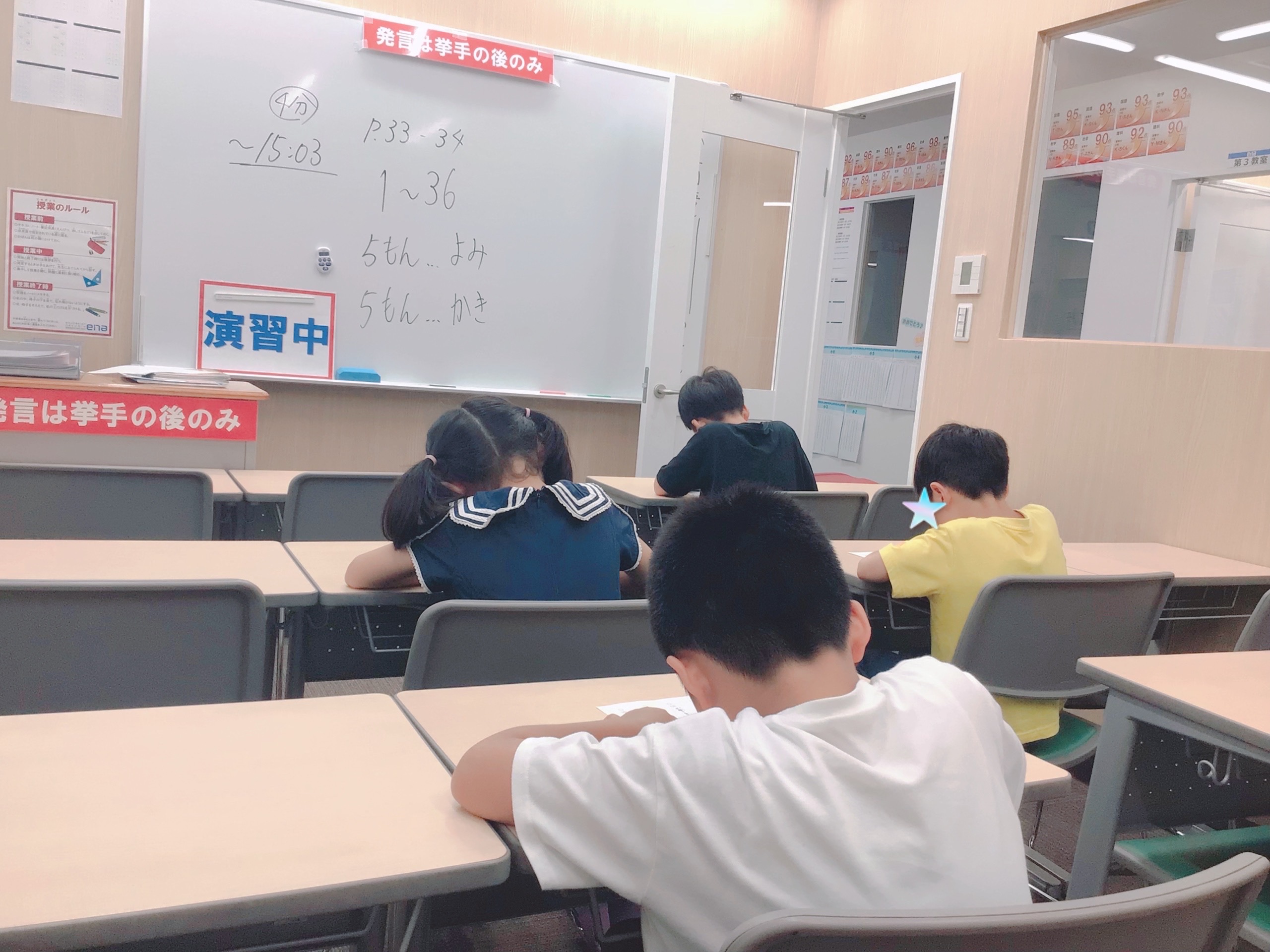 まず1つ目が、授業前の時間!私や川上が何も言わずとも、自分の席に着いて漢字テストのお勉強に勤しんでいます。私が教室に入ってくることすら気付かない子どももいるくらいで、「えっ!?いつ入ってきたの!?」と驚かれるくらいです(寧ろ驚いているのはこちらですが笑)。