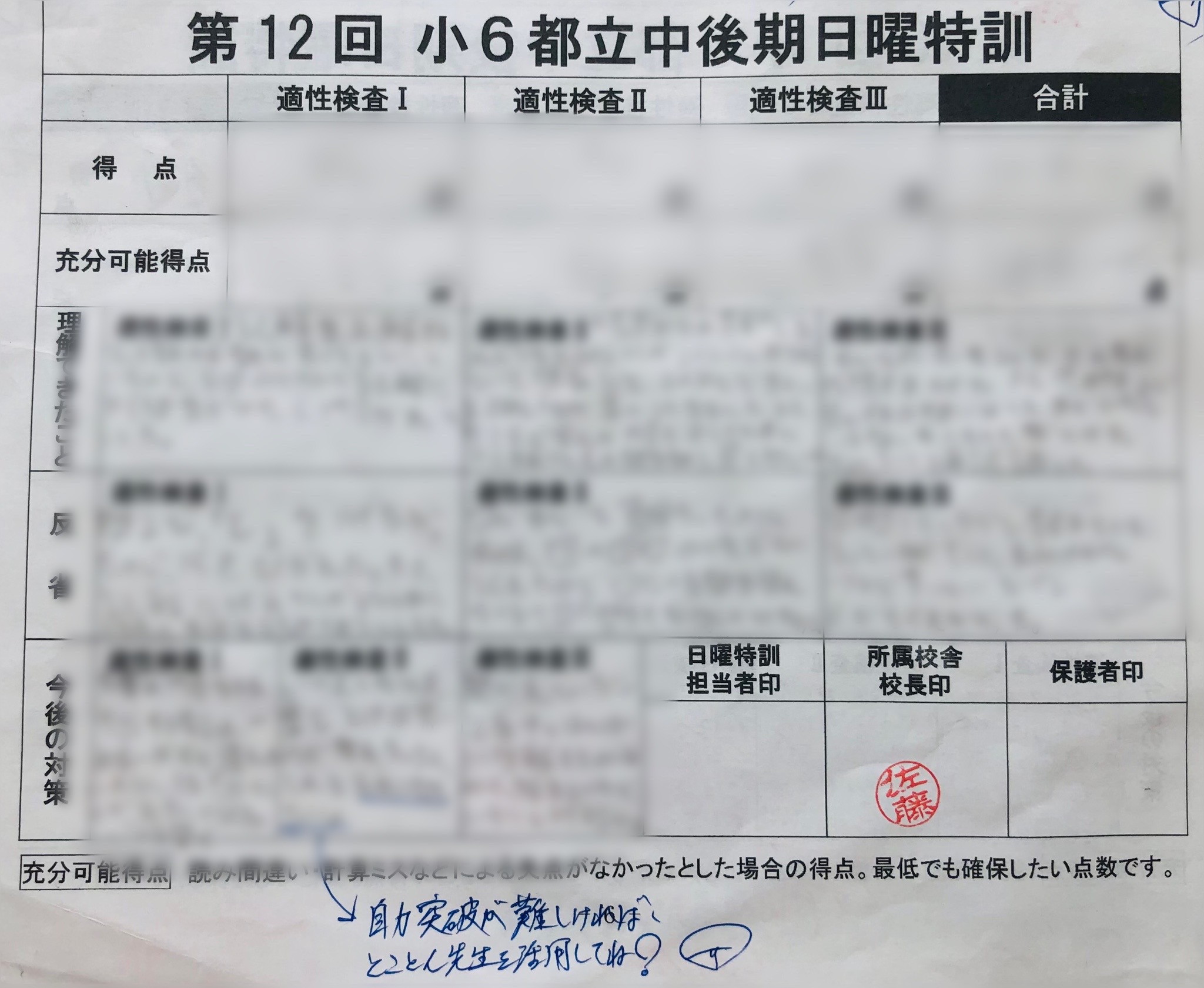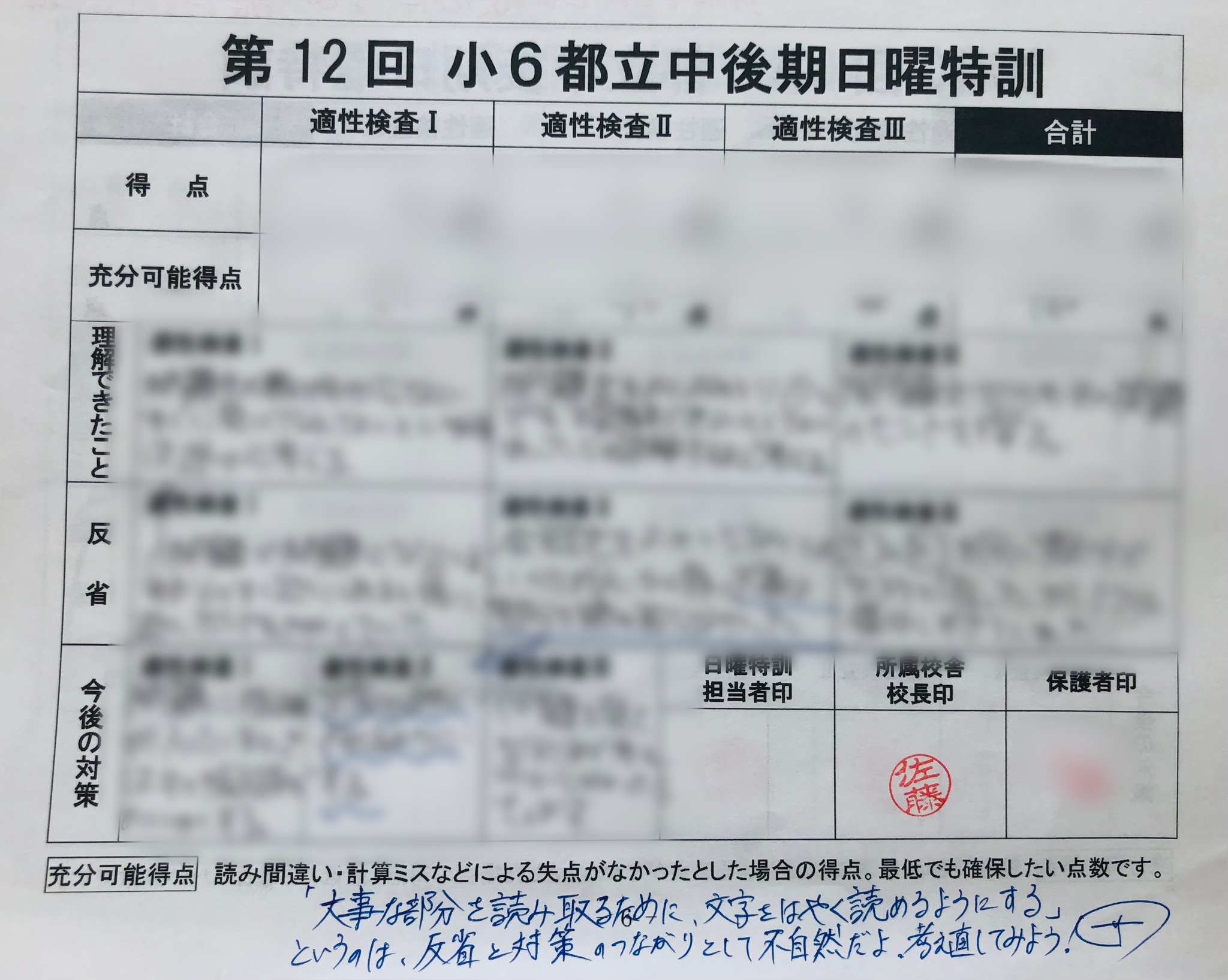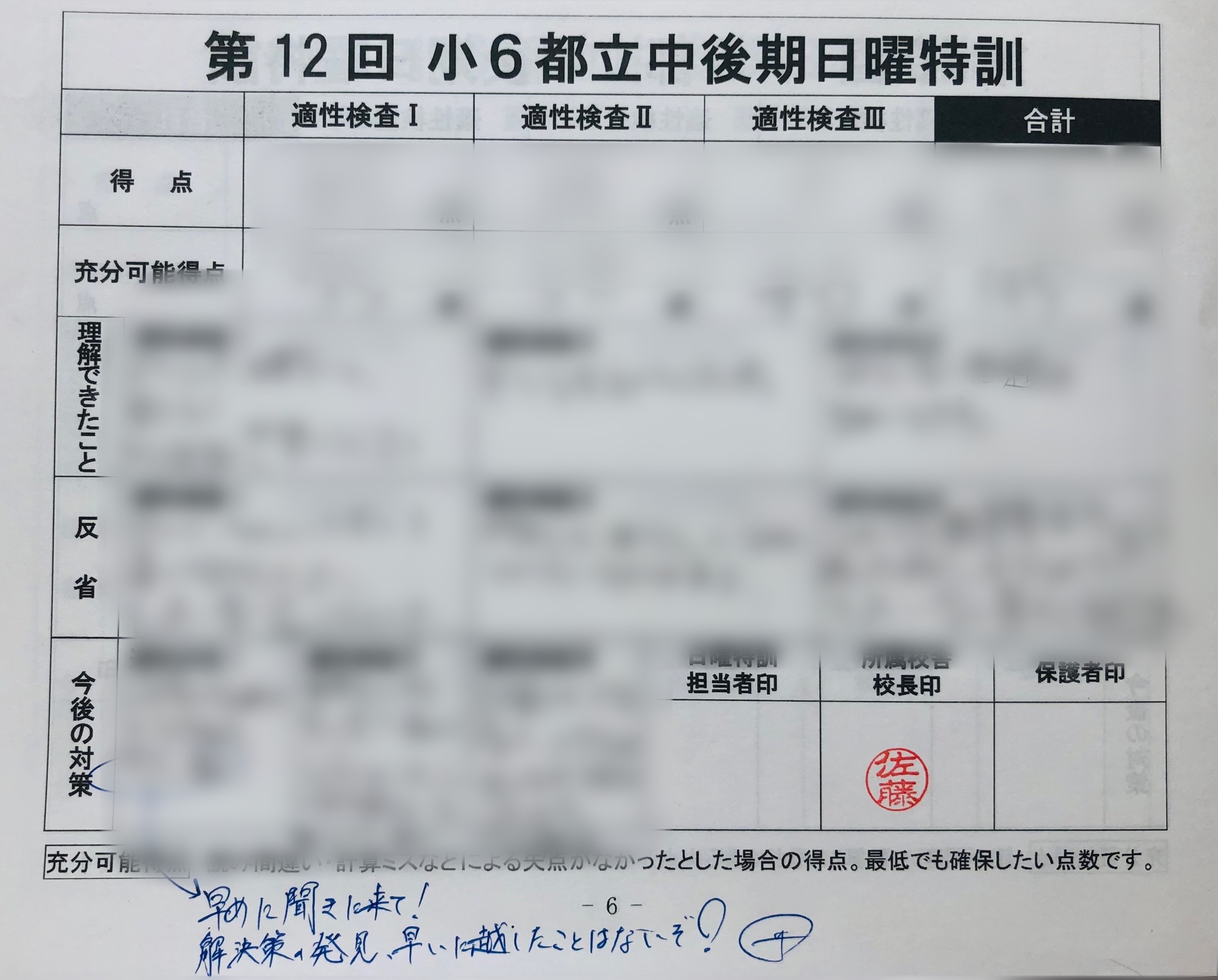 こちらのブログで、小学6年生の後期日曜特訓に関するお話をさせていただきました。