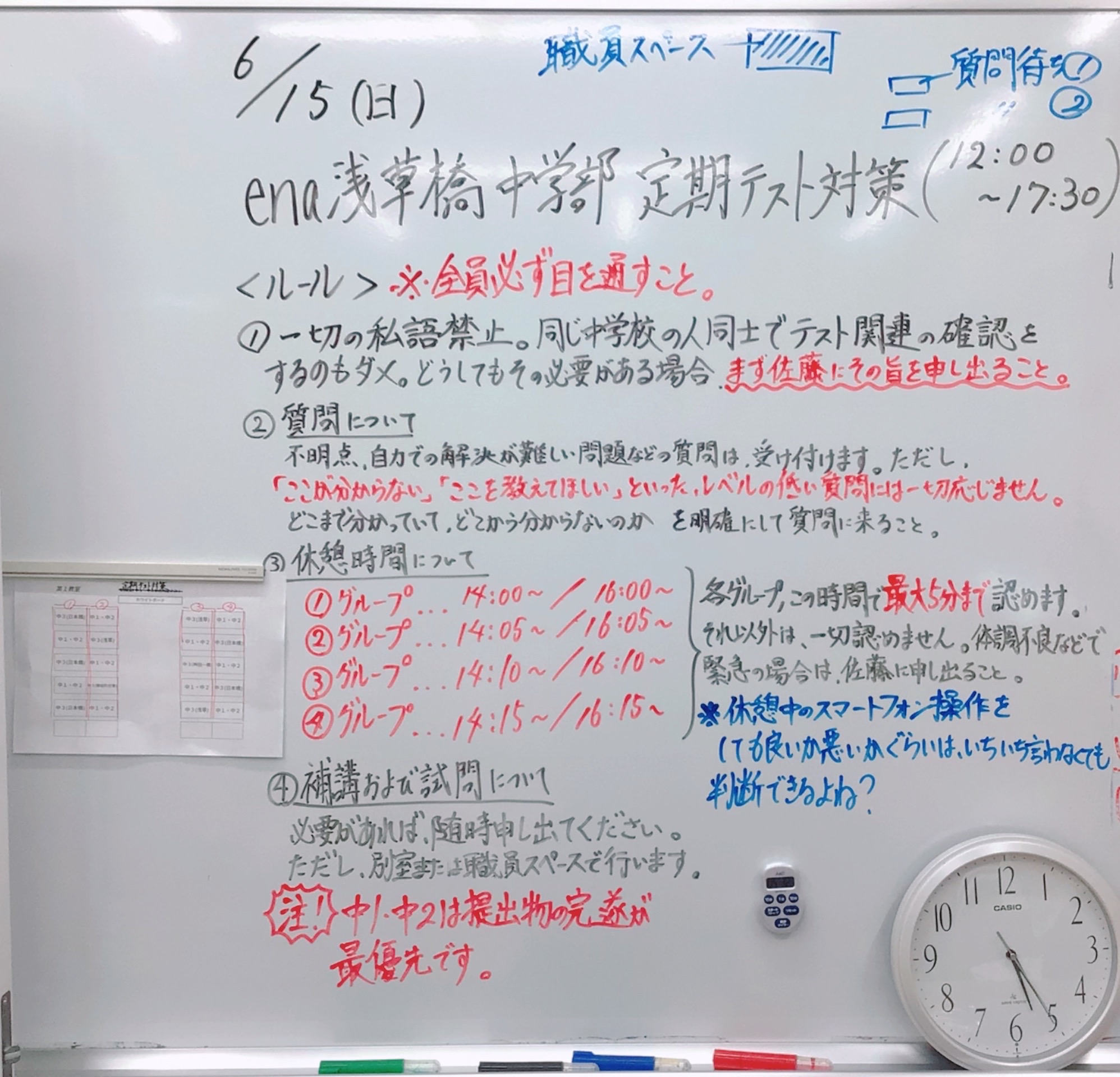 教室内は、一切の私語がありません。同じ中学校の子ども同士でテストについて確認することすら、禁じました。どうしても確認したいことがあればまず佐藤に許可を取りなさい、と。