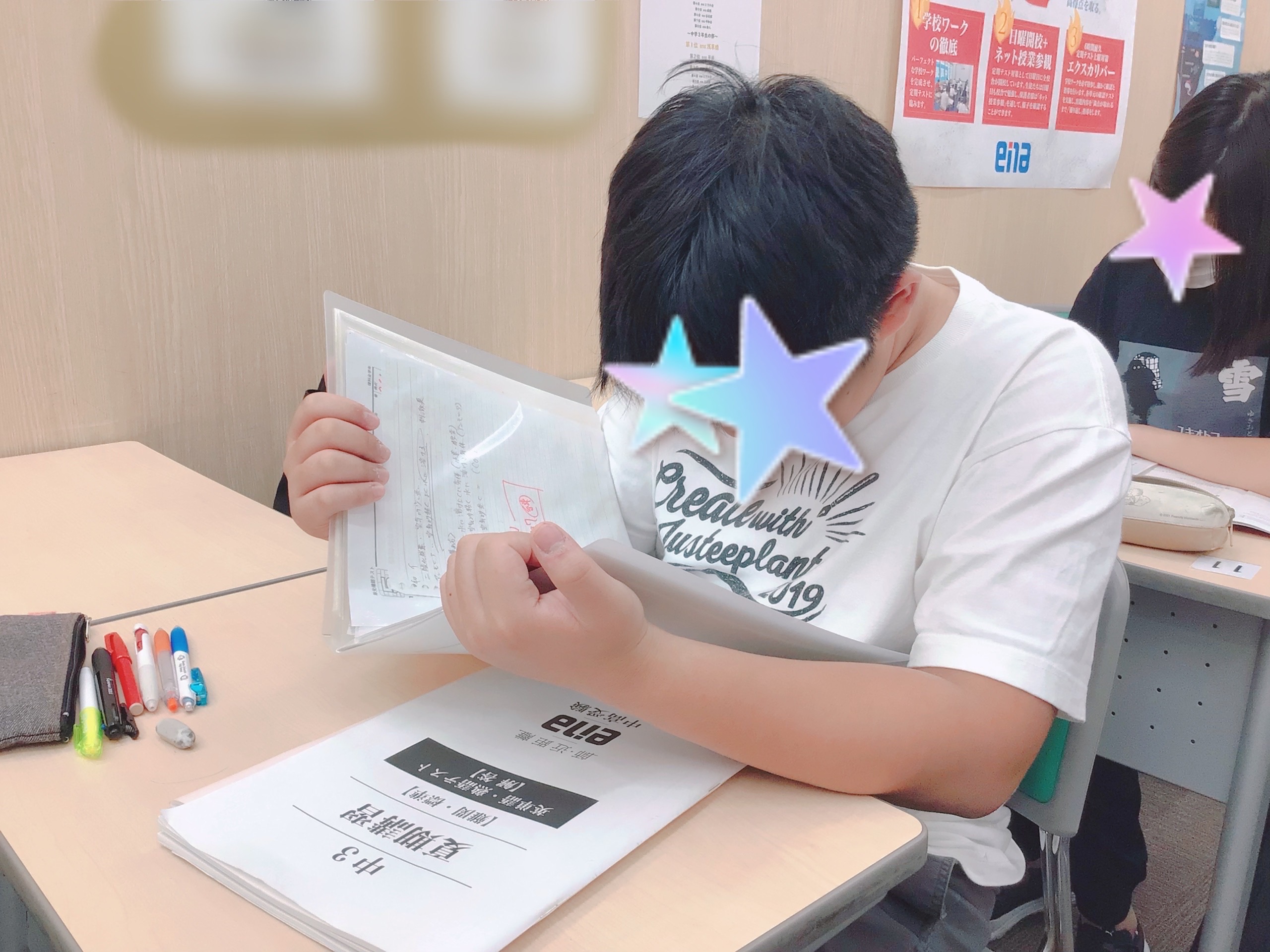 夏期講習会期間中、中学3年生は午前9時30分より集合をかけております。『固定自習』という形で、9:30-11:30または12:30、そこから最大で1時間の昼休憩を認め、再開後授業開始まで自習が続きます。
