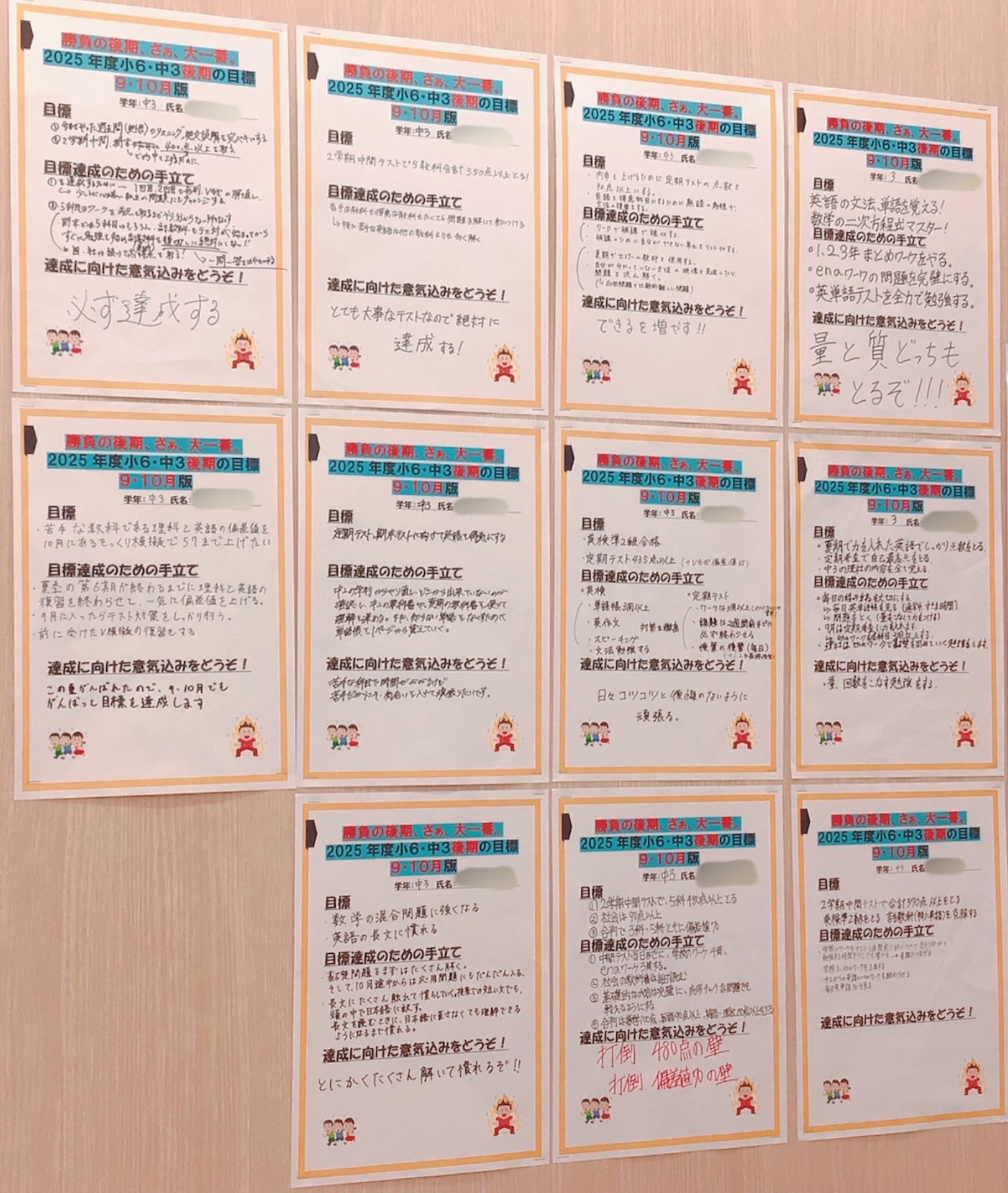 ☆小学6年生・中学3年生 後期の目標を掲示しました☆