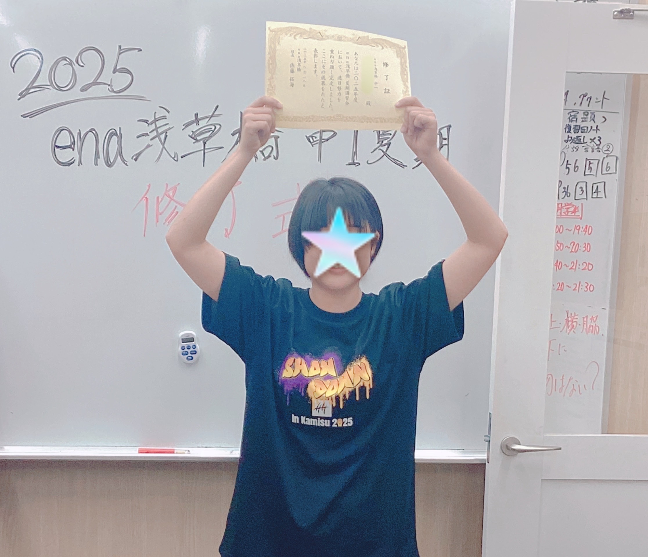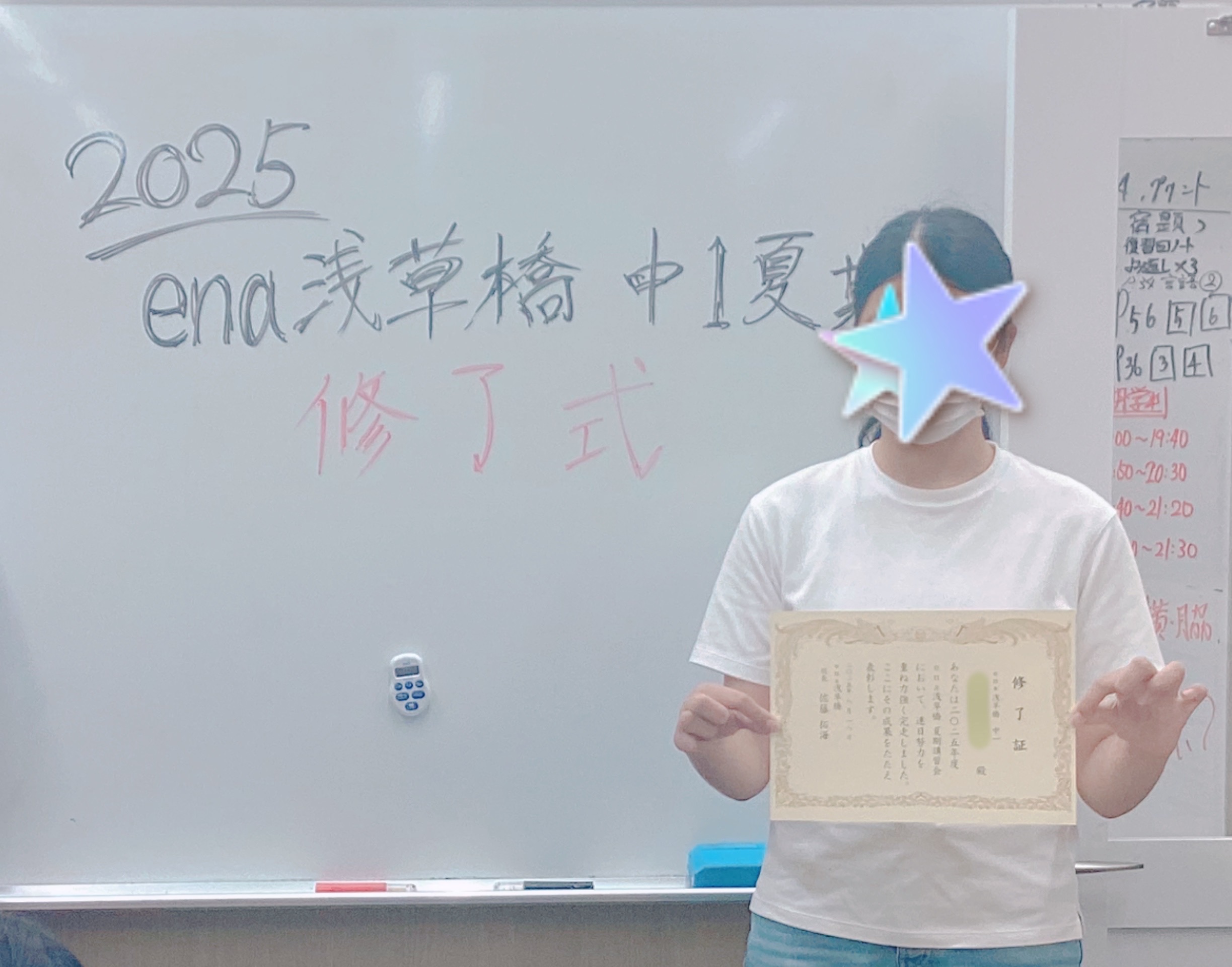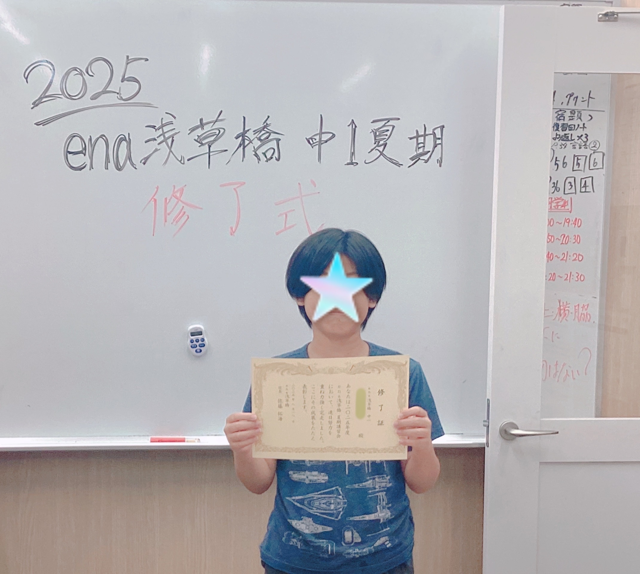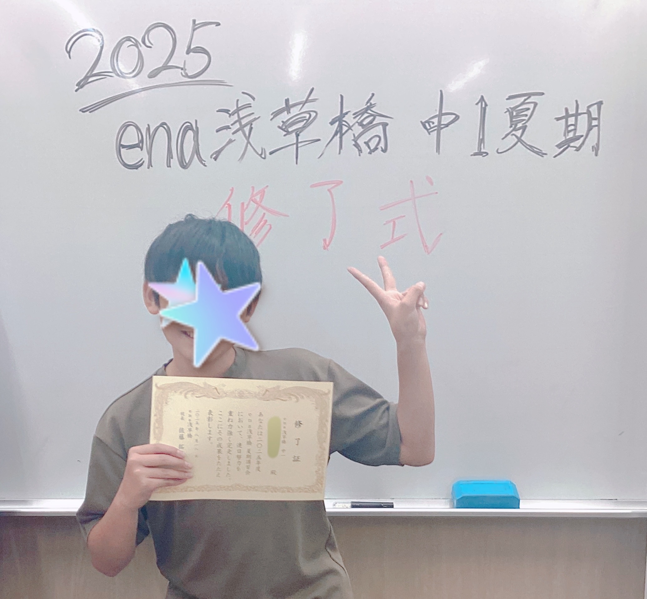 小学4・5年生、中学1・2年生は、夏期講習会最終日に修了式を挙行!今夏の努力および奮闘を讃え、修了証を授与いたしました。