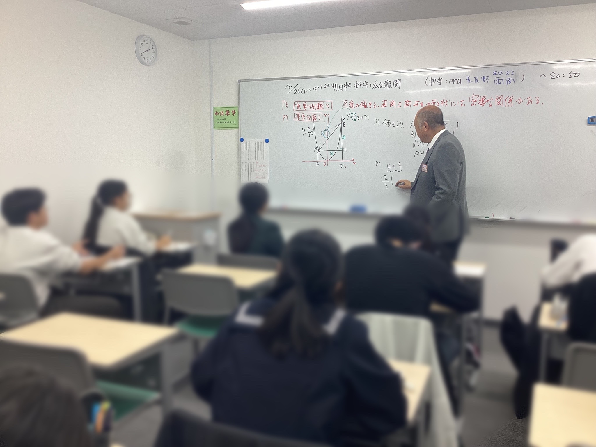 こちらのブログ(←クリックできます♪)でお伝えいたしました通り、10月19日(日)より中3後期日曜特訓の「日比谷+早慶コース」・「青山+私立難関コース」・「新宿+私立難関コース」が合同実施から分散して実施となり、さらにバージョンアップしています☆