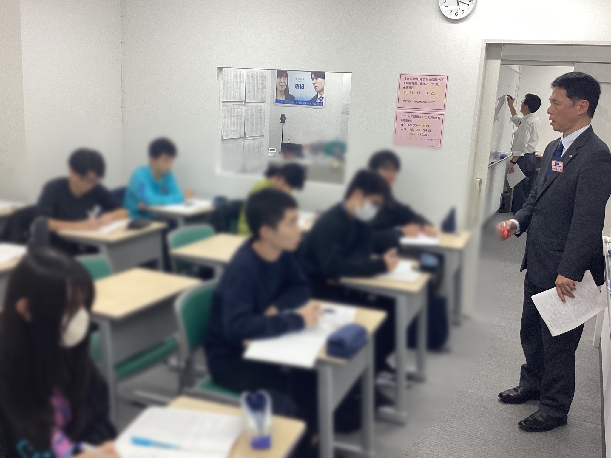 目の前にいる子どもたち全員を、第一志望校へ通したい。それは自校舎で指導しているときはもちろん、こうして後期日曜特訓で子どもたちを前にしたときも思うことです。私も連日子どもたちからの熱量を受け取り、それを上回る熱量で還元いたします。