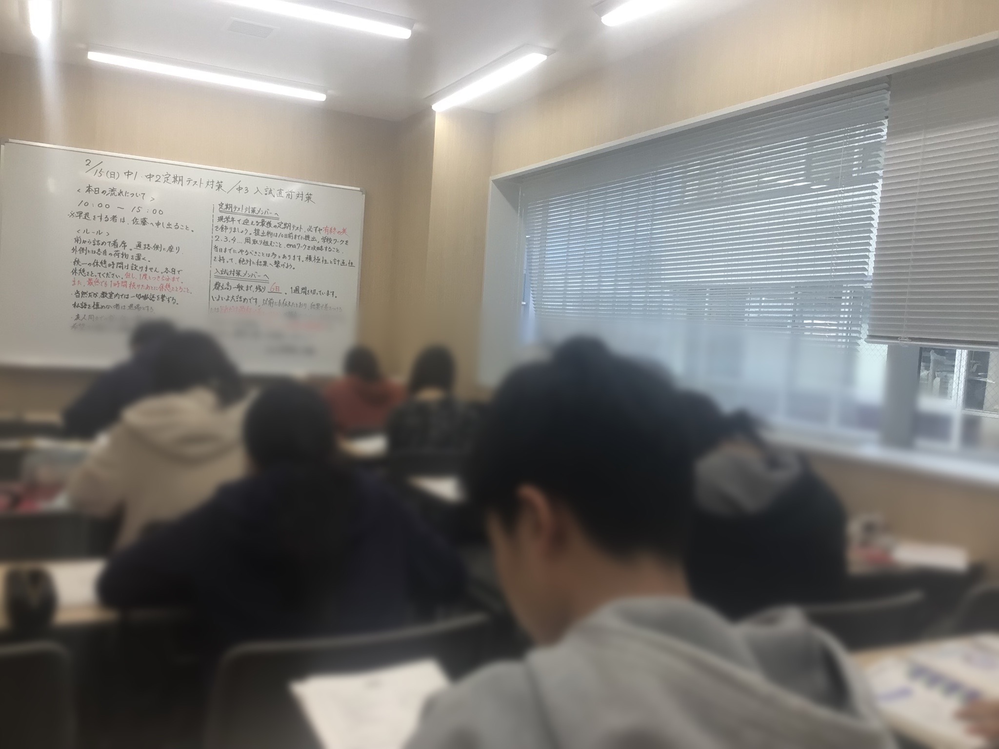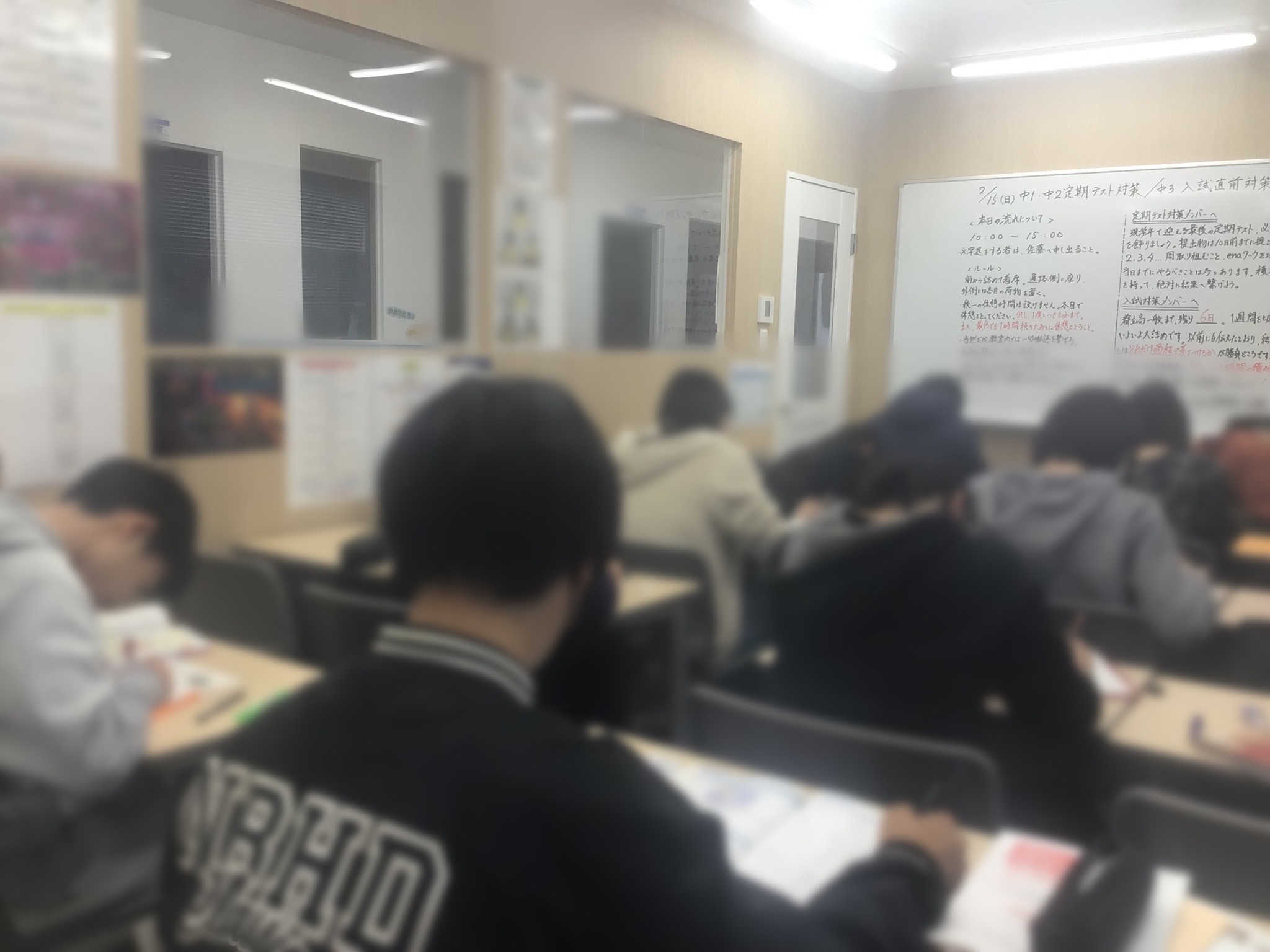 この日は2月15日(日)だったので、現中学1・2年生に加えて都立高一般入試を控える現中学3年生も参戦してくれました。やはり3学年揃うと、いつも以上に気迫と熱量が強く感じられます。