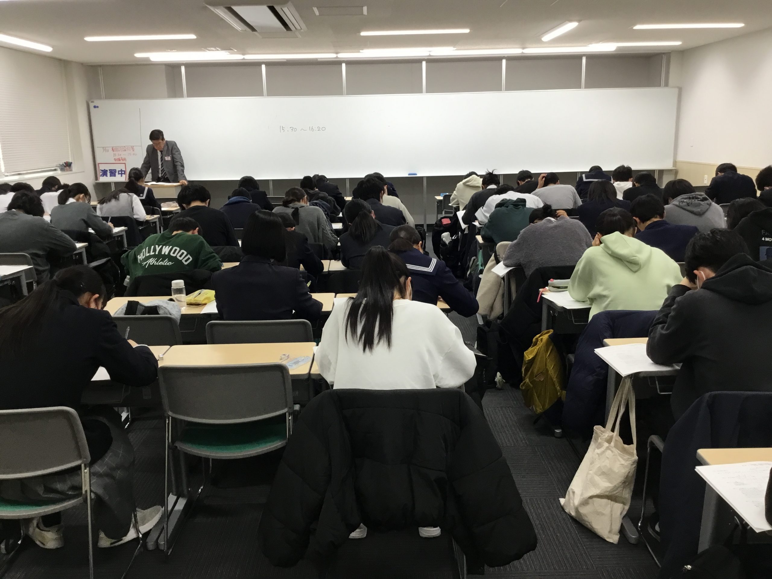 こんにちは。ena入谷の森下です。中学入試に続き、高校入試も始まりました。1月19日には千葉県内私立高校入試、1月22日には都内私立高校推薦入試、そして1月26日には都立高推薦入試日となります。都立進学重点校はほぼ前年並みの倍率ですが、日比谷高校、戸山高校、青山高校は倍率が上がっています。特に昨年から復活した「集団討論」の対策をenaでは2回実施しました。この集団討論では、リーダーシップ・協調性・コミュニケーション能力を問われます。本番を想定して、中学校の制服着用でena高校入試直前特訓担当教師が対策をしました。初めての経験で緊張した生徒も多くいましたが、時間とともに活発な討論となり、最後に担当教師より一人一人にアドバイスをして終了となりました。この後は20時50分まで英語数学の授業が行われ、7時間30分の長い1日でしたが、受験生のみなさんは疲れた顔み見せずに真剣に受講していました。推薦入試まで数日ですが、体調管理の上、入試に臨んでください。私たち担当教師一同、応援しています。