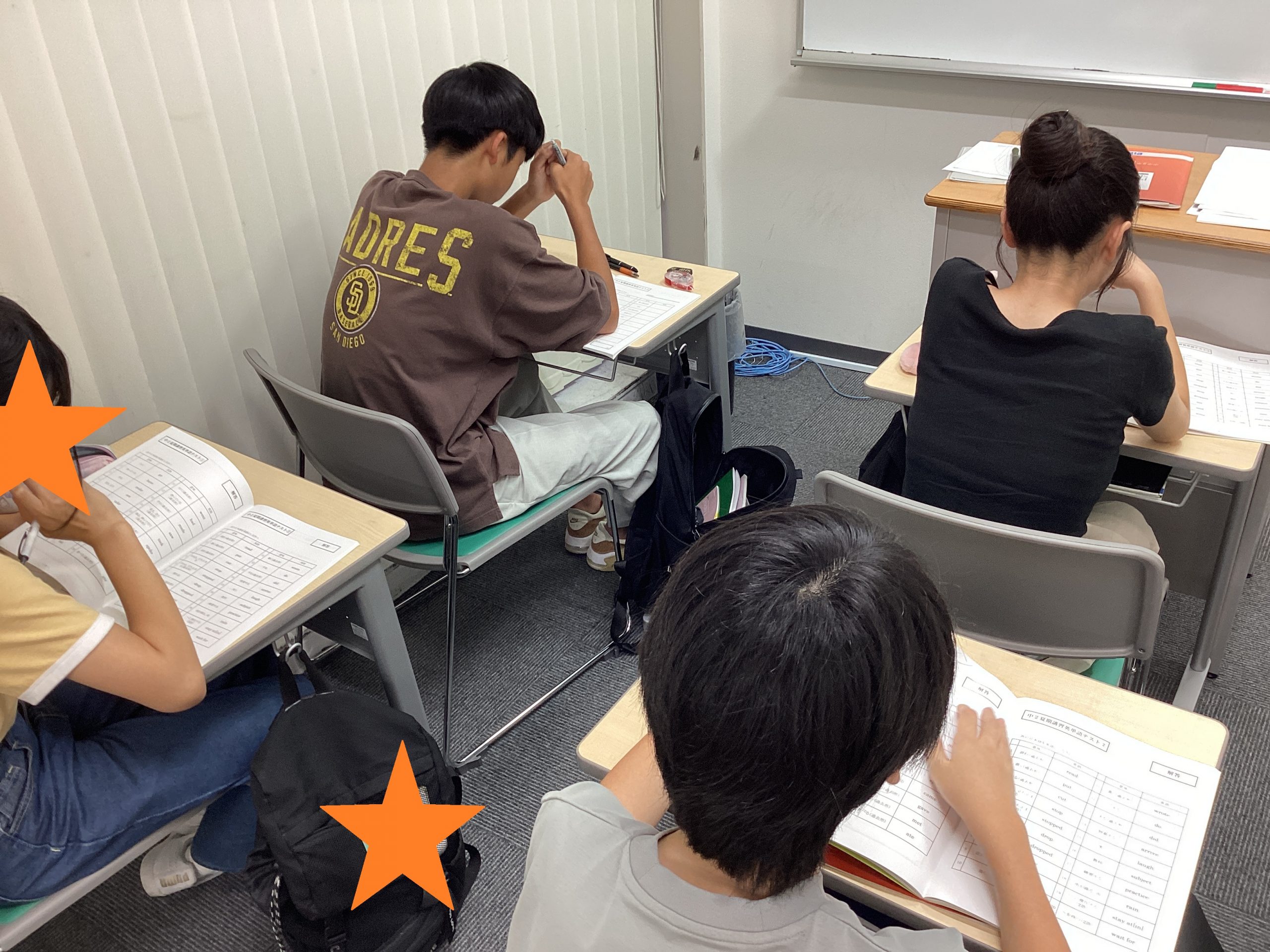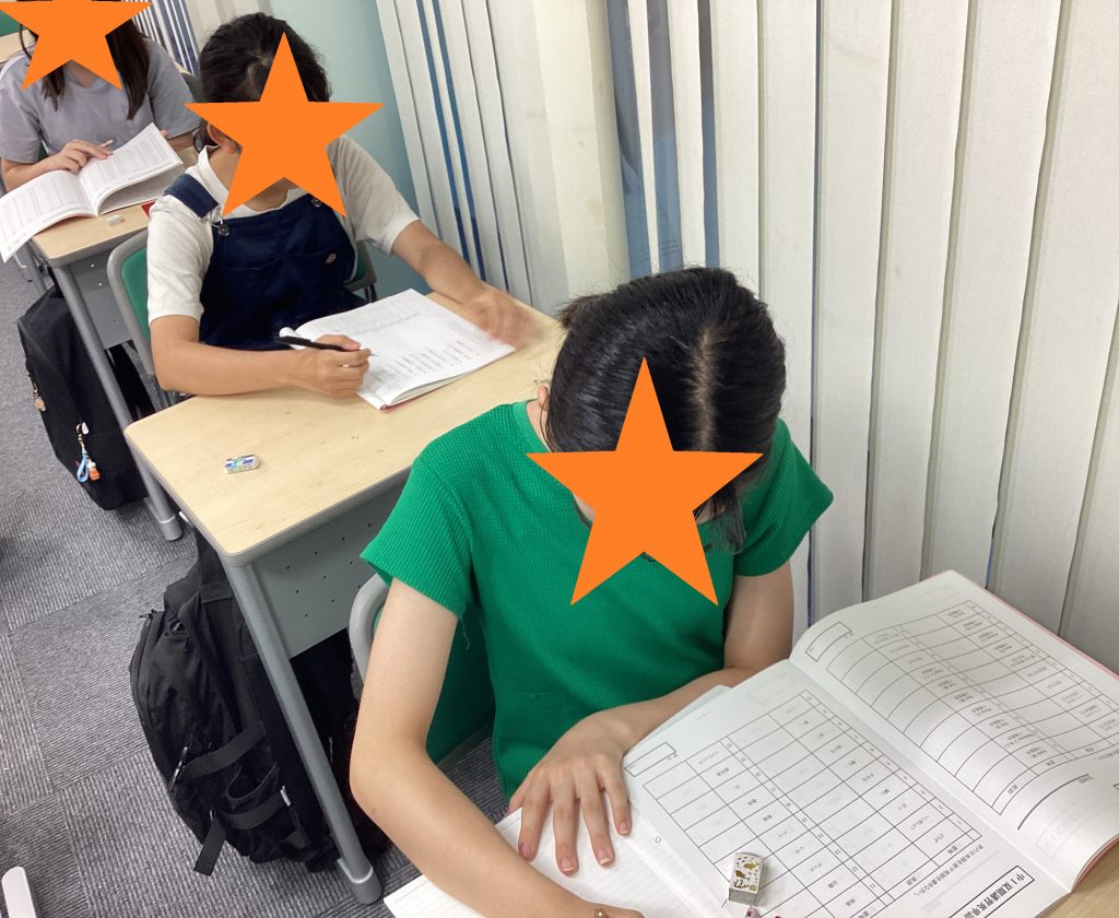 テストで満点を取るべく授業前に勉強をしている中学生の姿が見られました。
