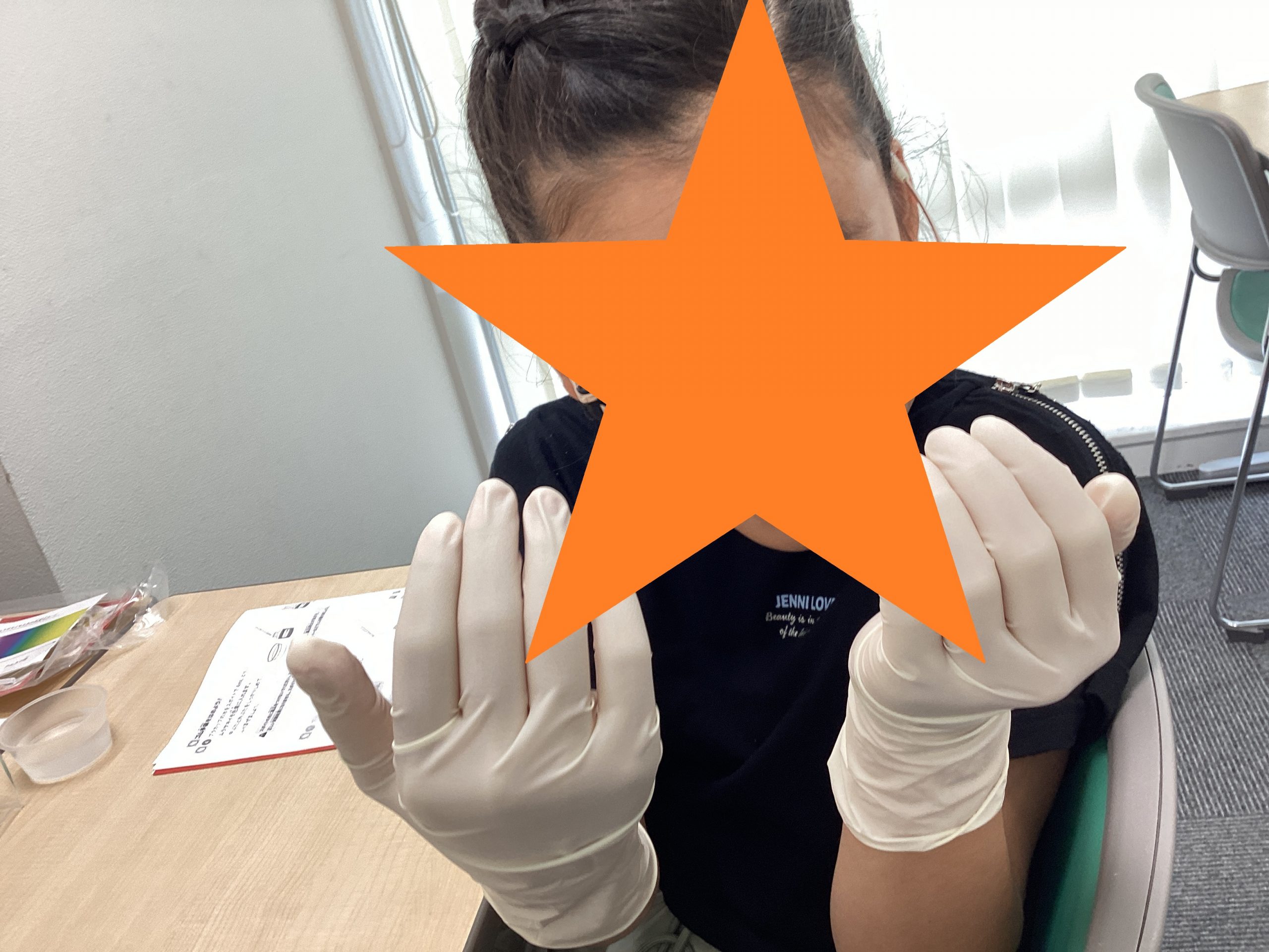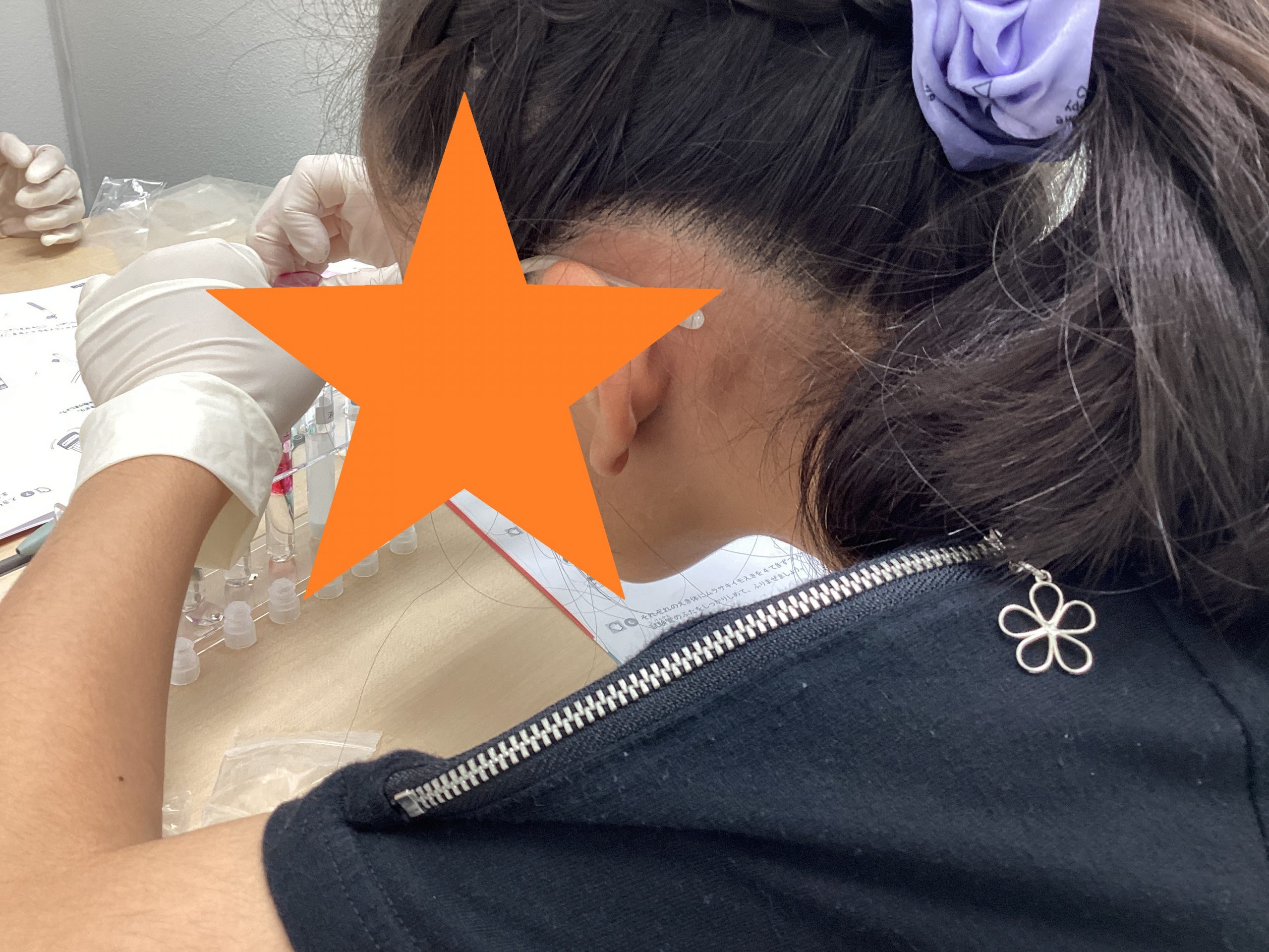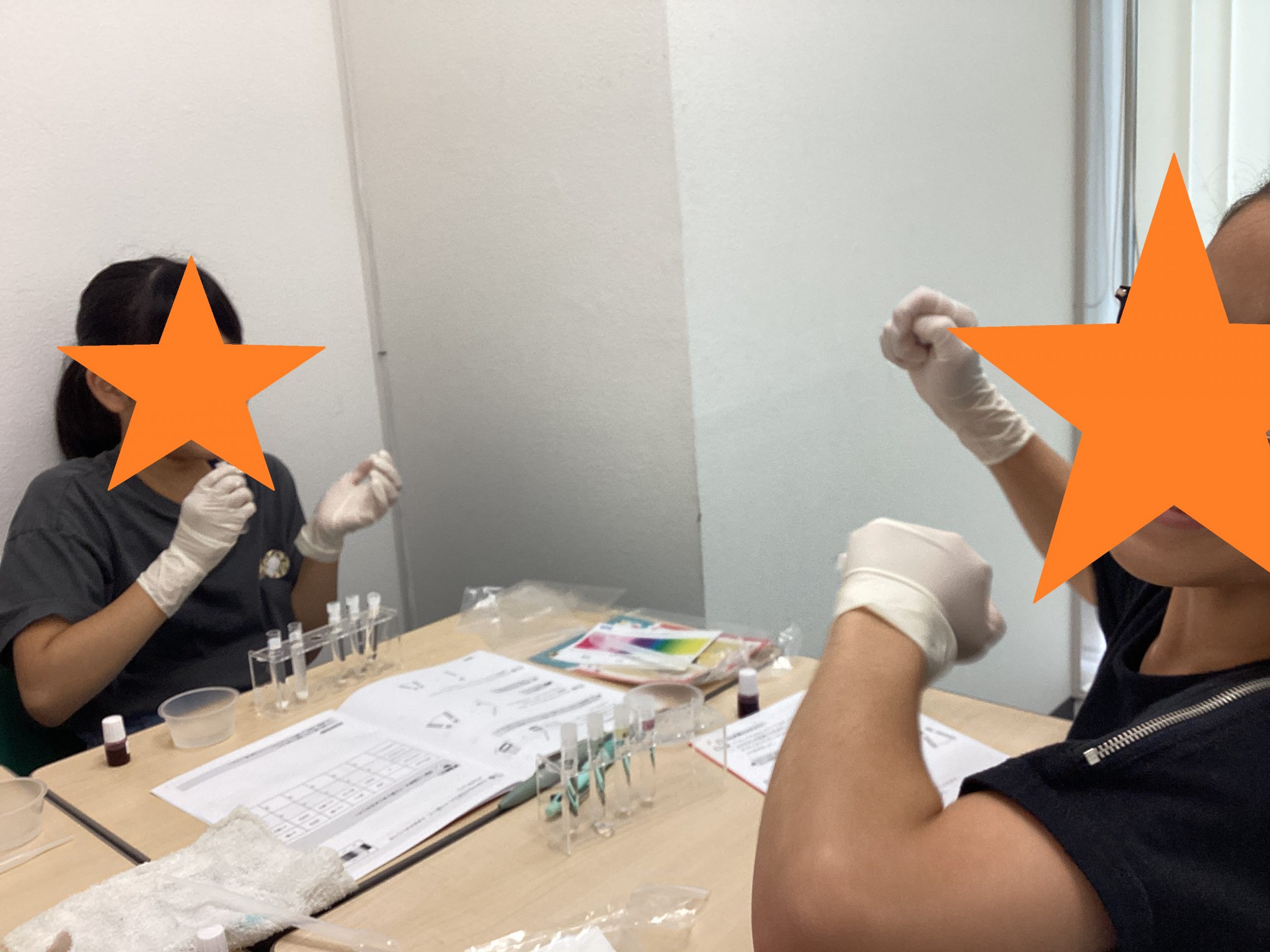 ゴム手袋をして科学者ムード!!