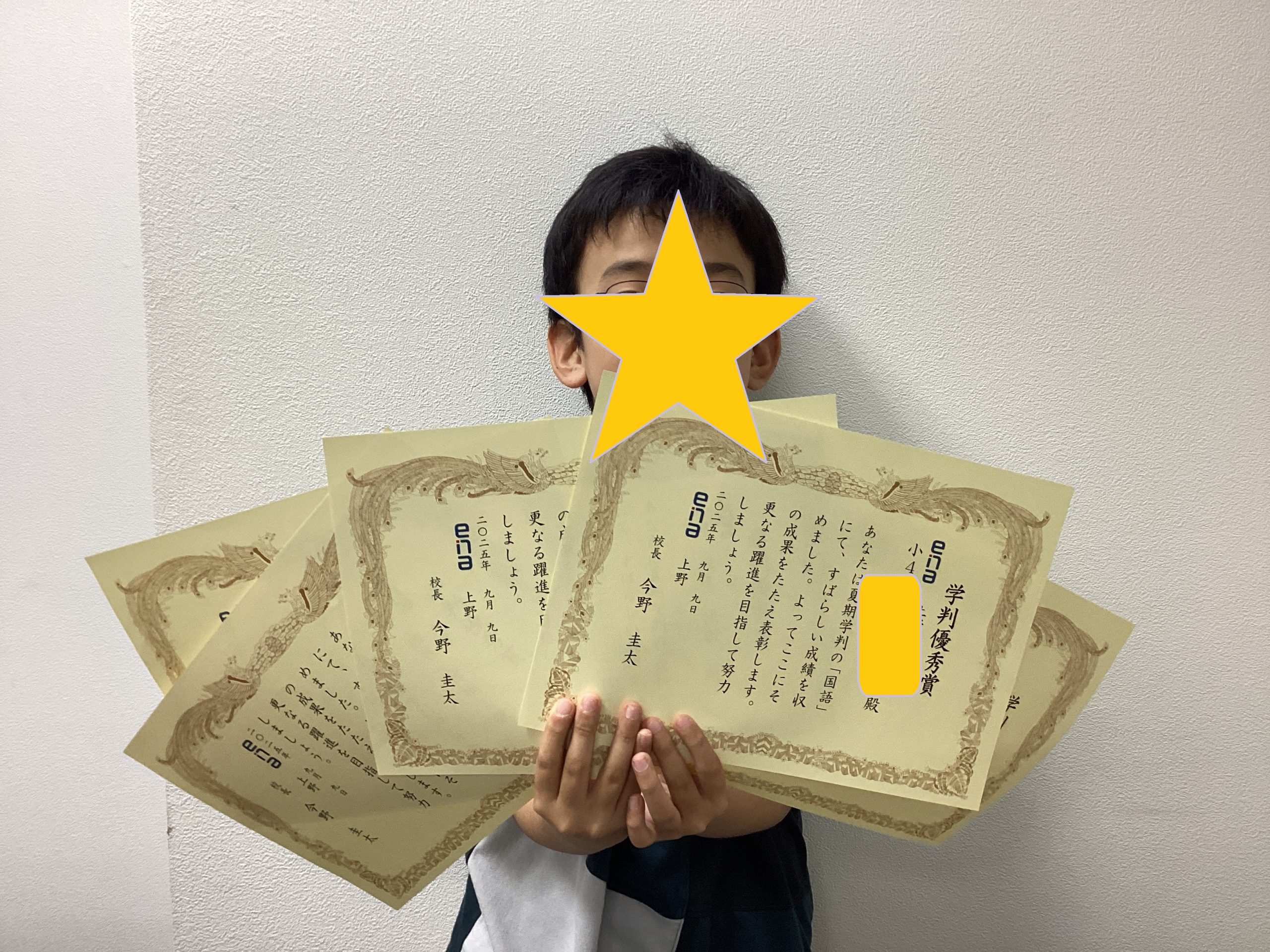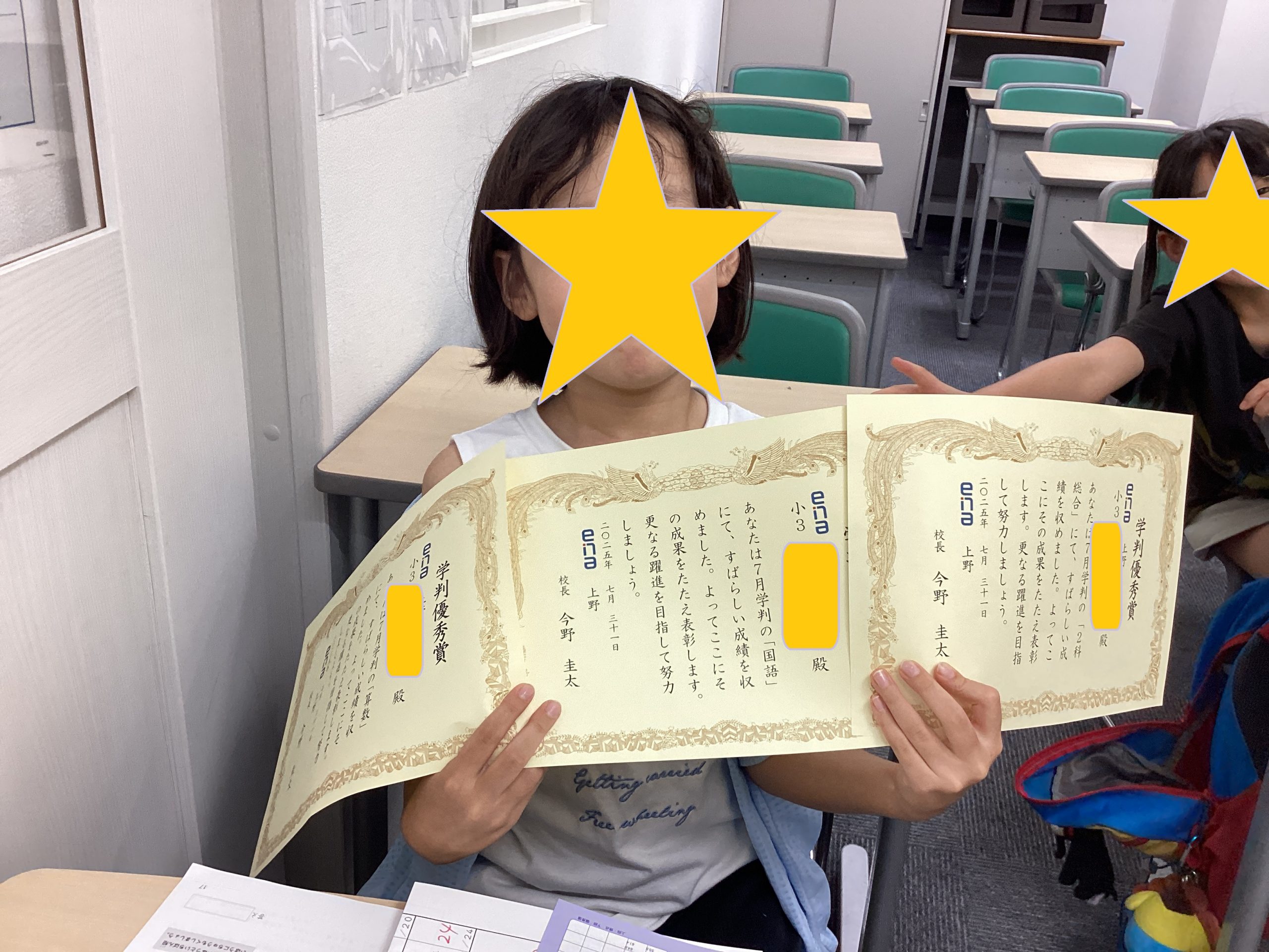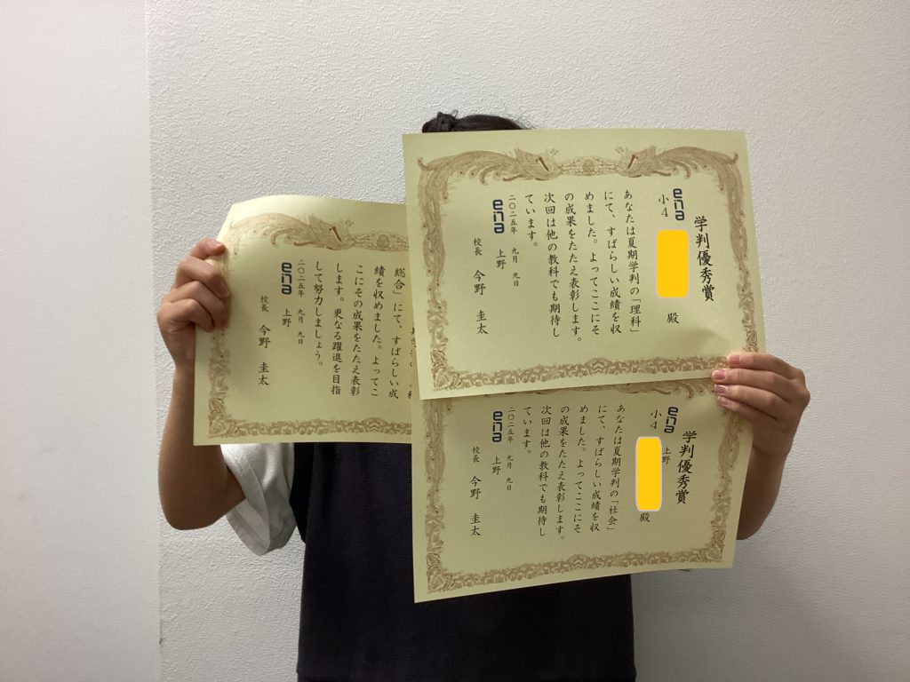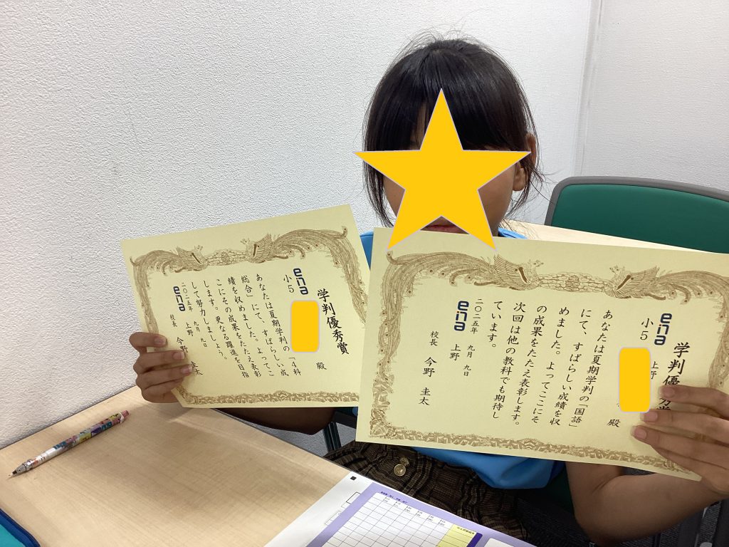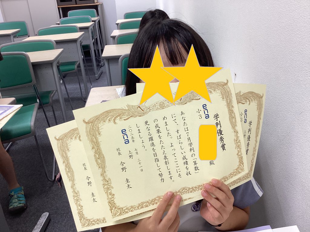 その際にena全体の成績で上位を取った子のみに表彰をしています。