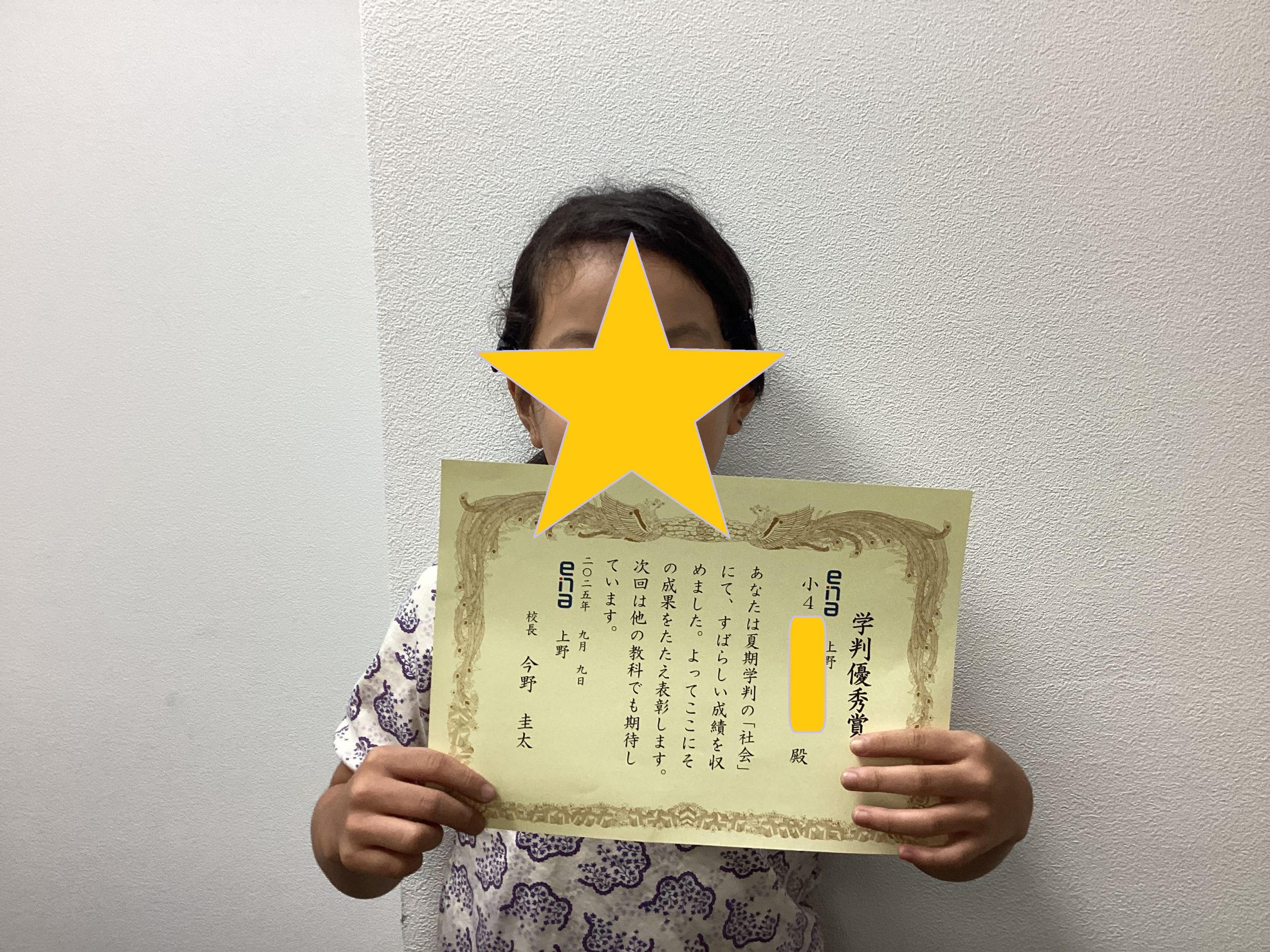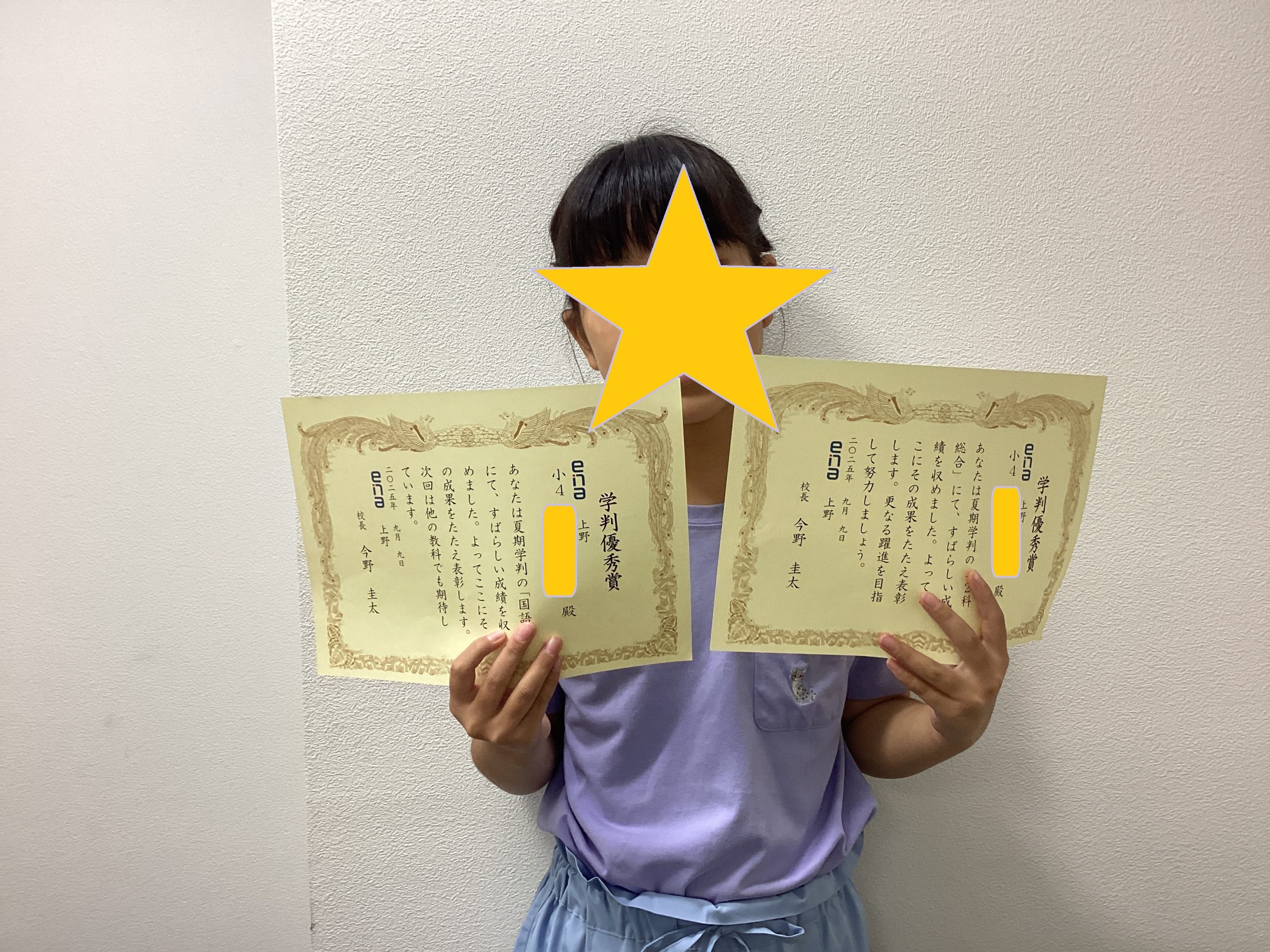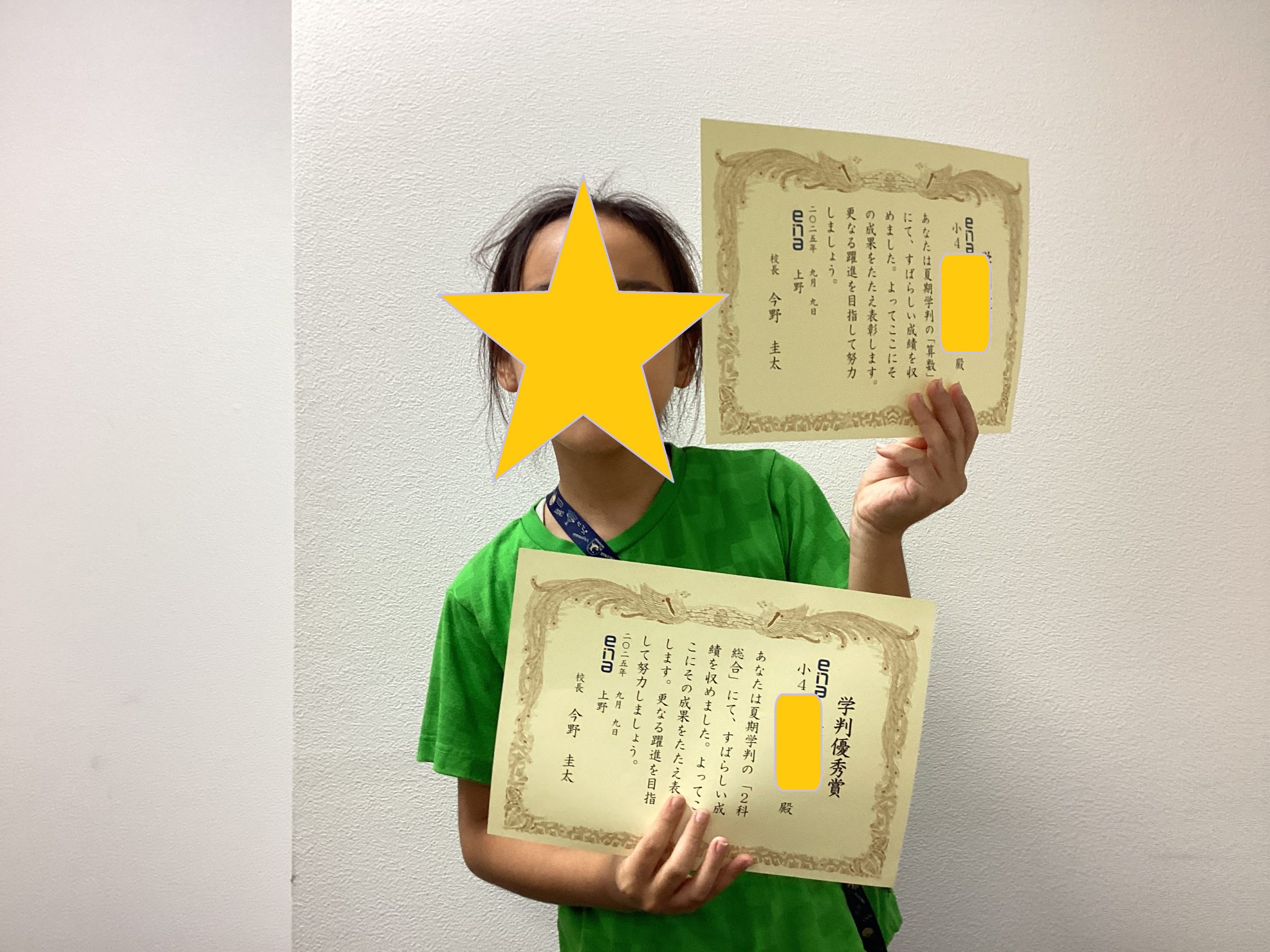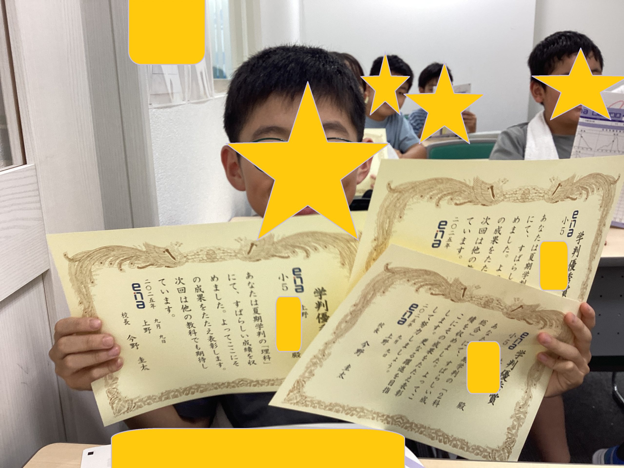 その際にena全体の成績で上位を取った子のみに表彰をしています。