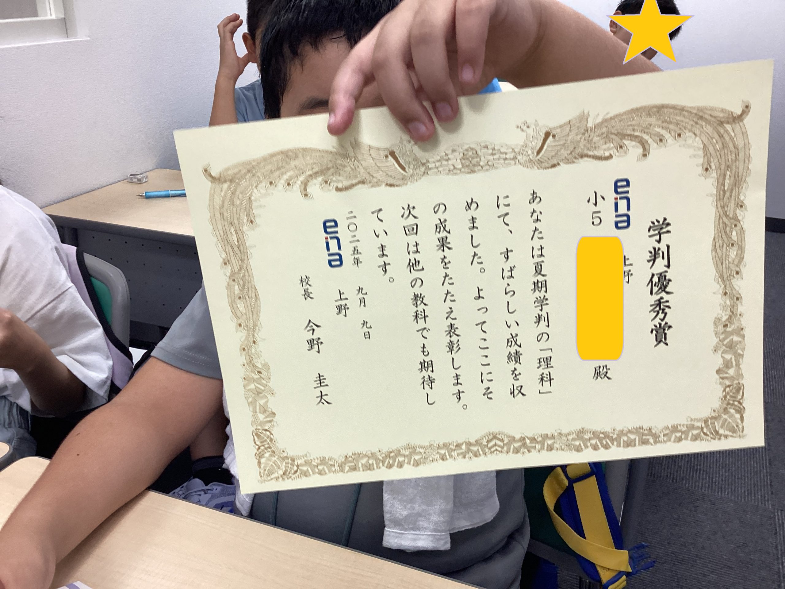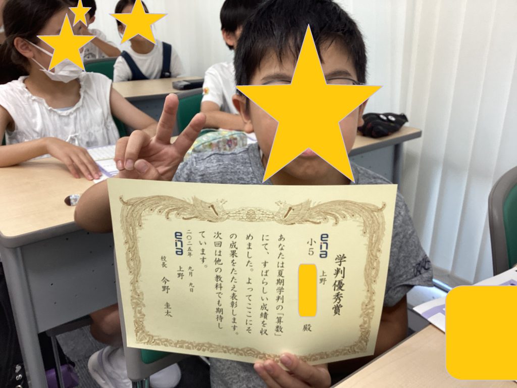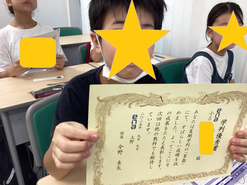 上野からこんにちは。0916~夏期学判表彰・小3・小4・小5・中1~