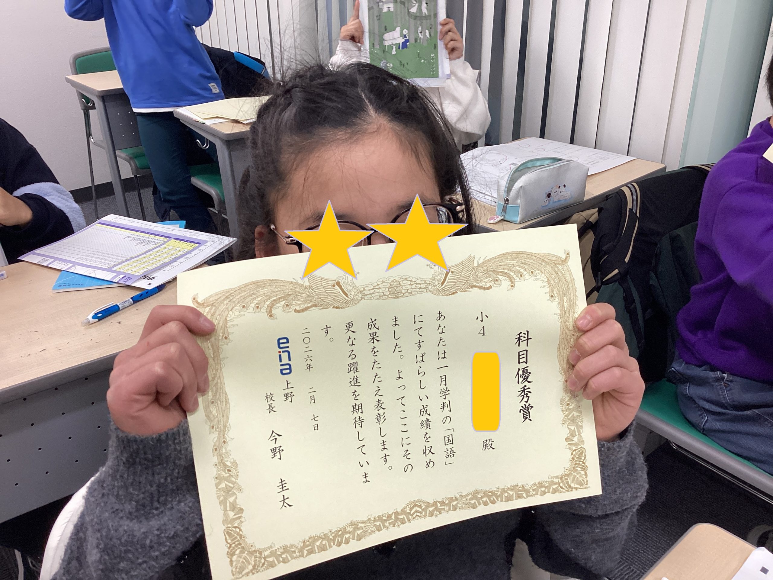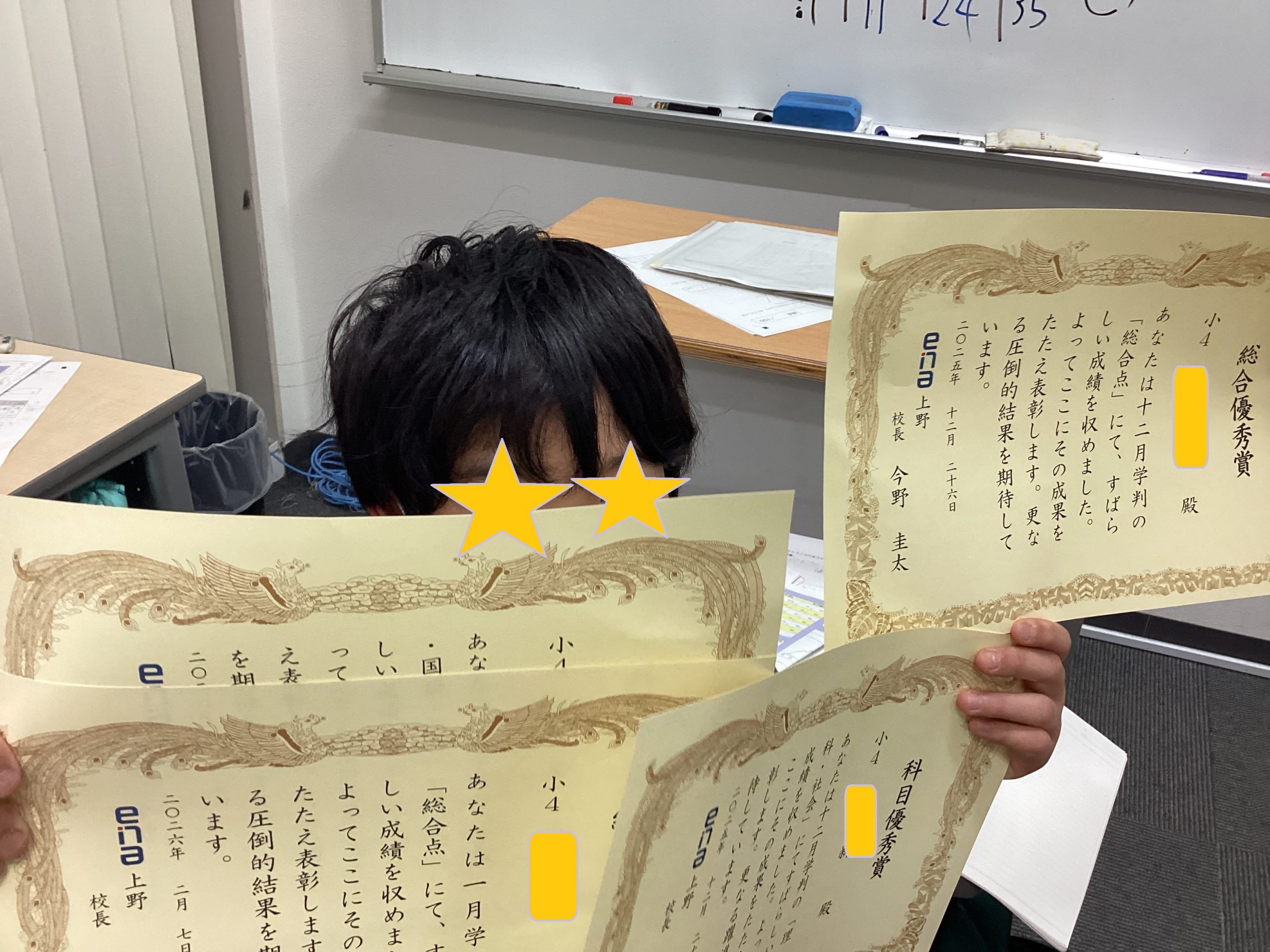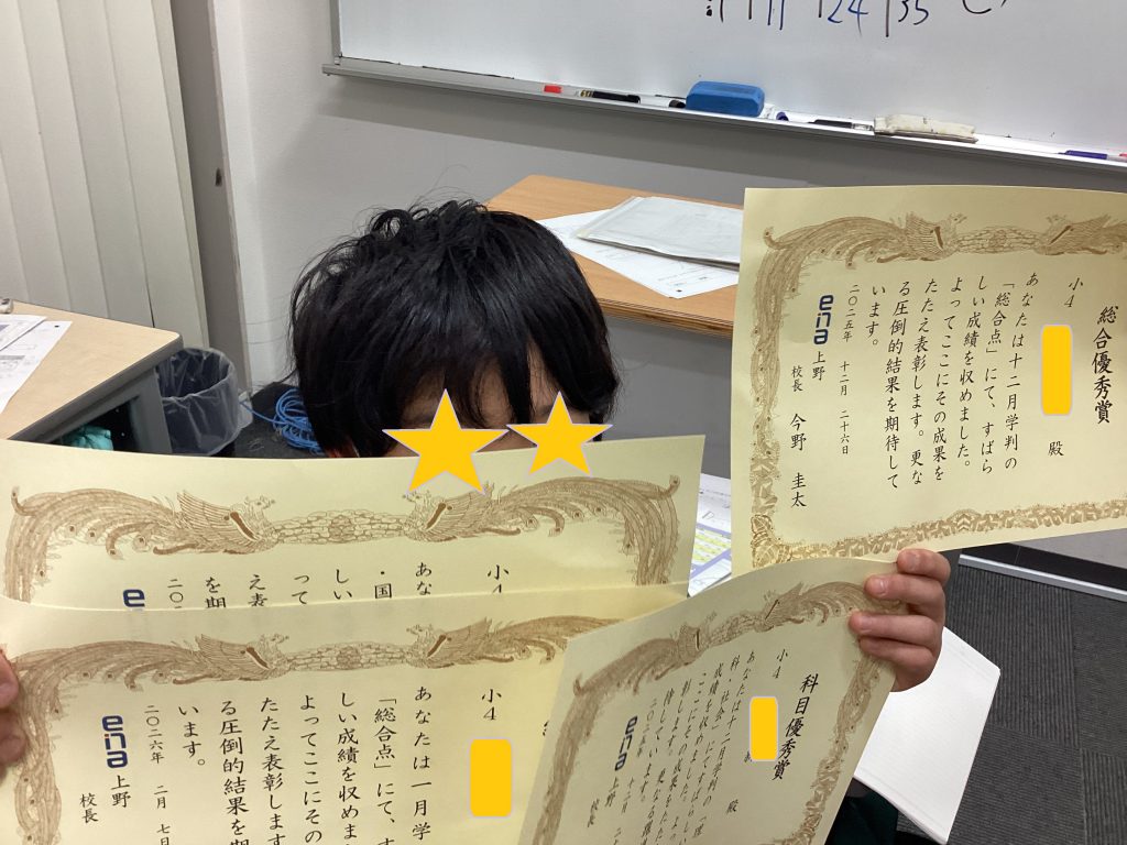こちらは、小4最後の学判の表彰です!