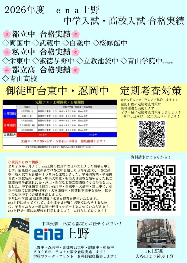 先日告知させていただいた御徒町台東中の無料公開テスト対策。早速反響をいただいております!!ありがとうございます。
