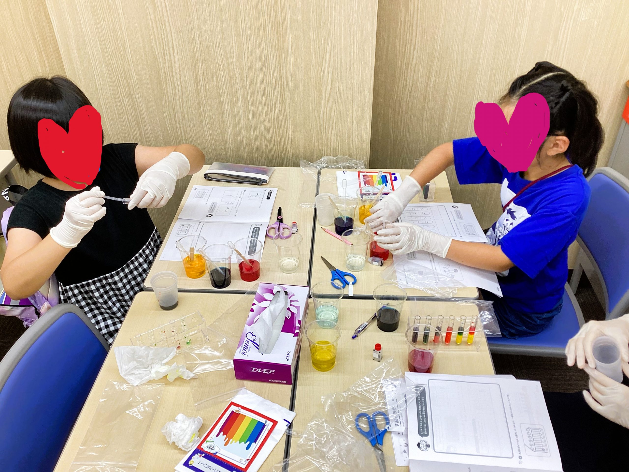 カラフルなお水を調整していく様子がとてもきれいで、みんな上手にできました。