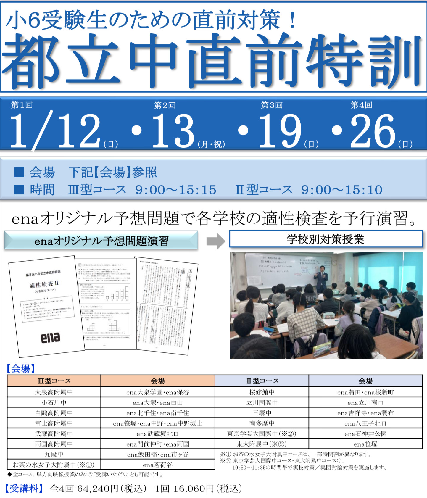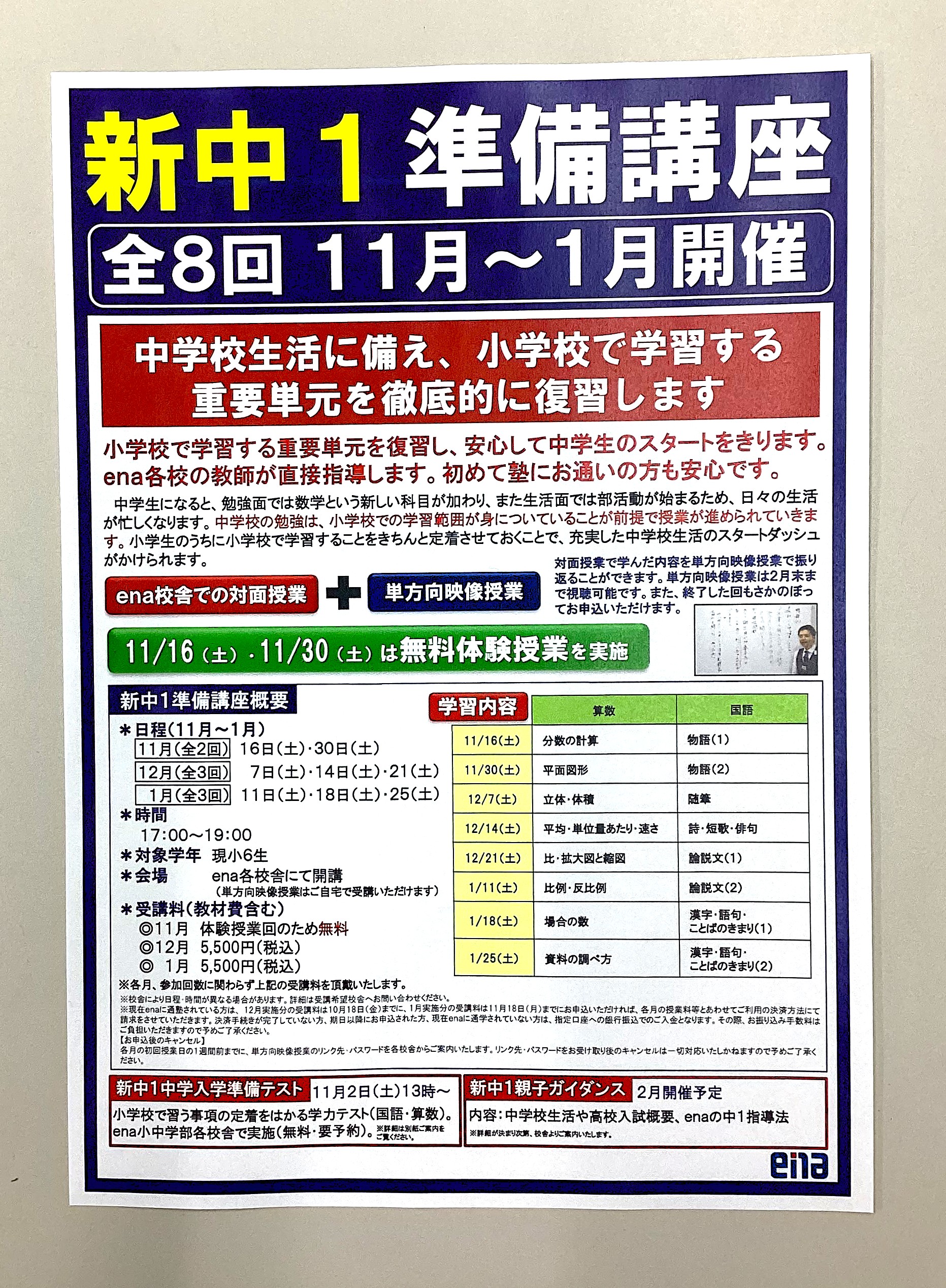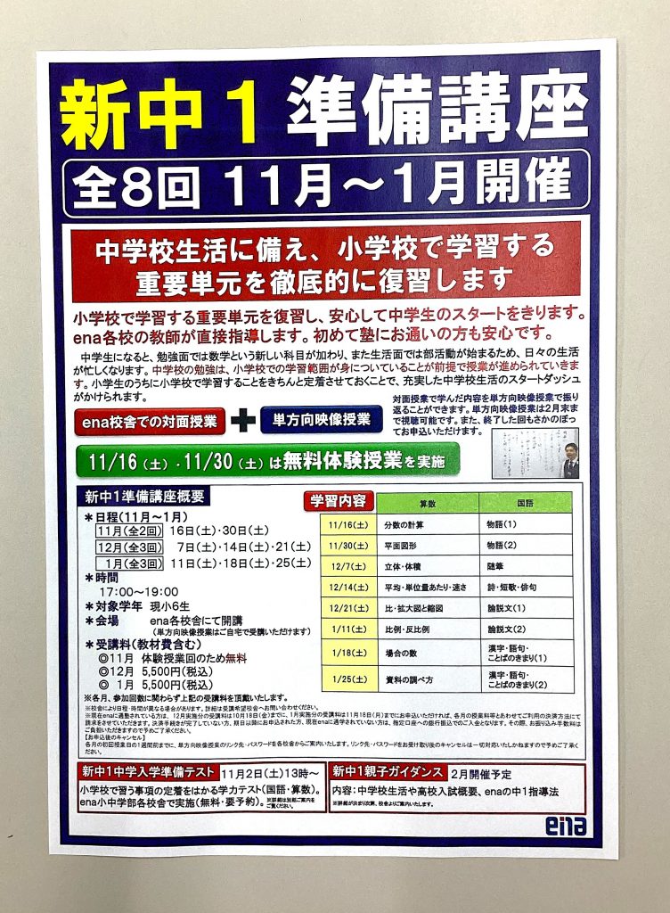 enaでは、新中1準備講座を実施します!