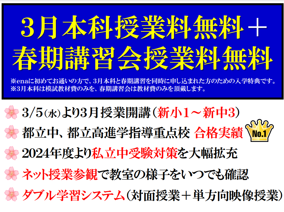 3月本科授業料無料+春期講習会授業料無料!