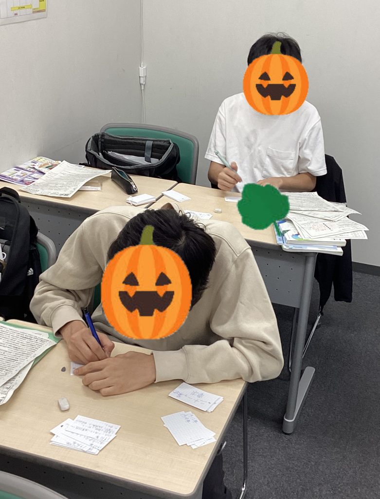 単語帳を作成する中3生。反復学習!