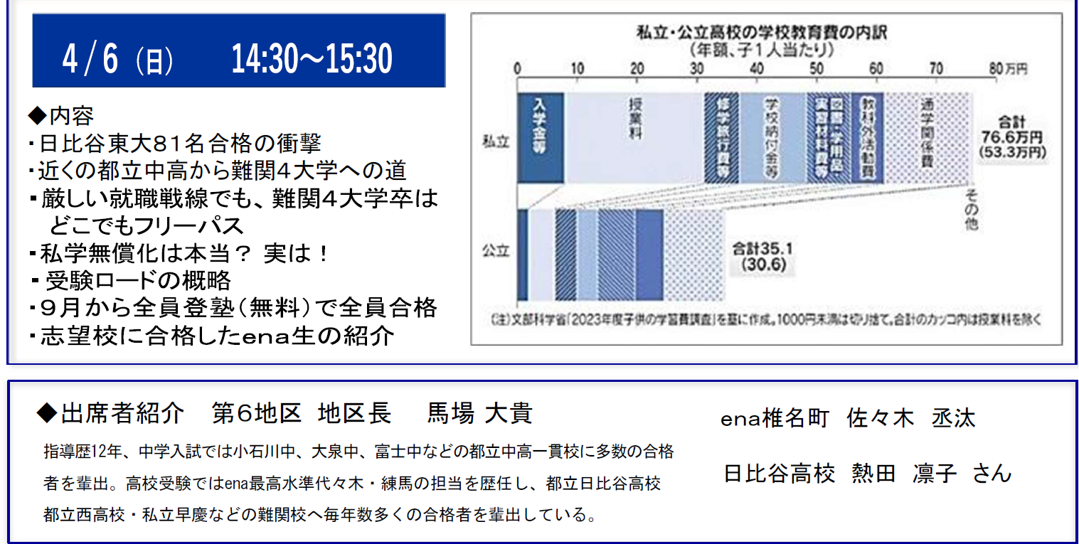 【ena椎名町】4月6日入試報告会のご案内