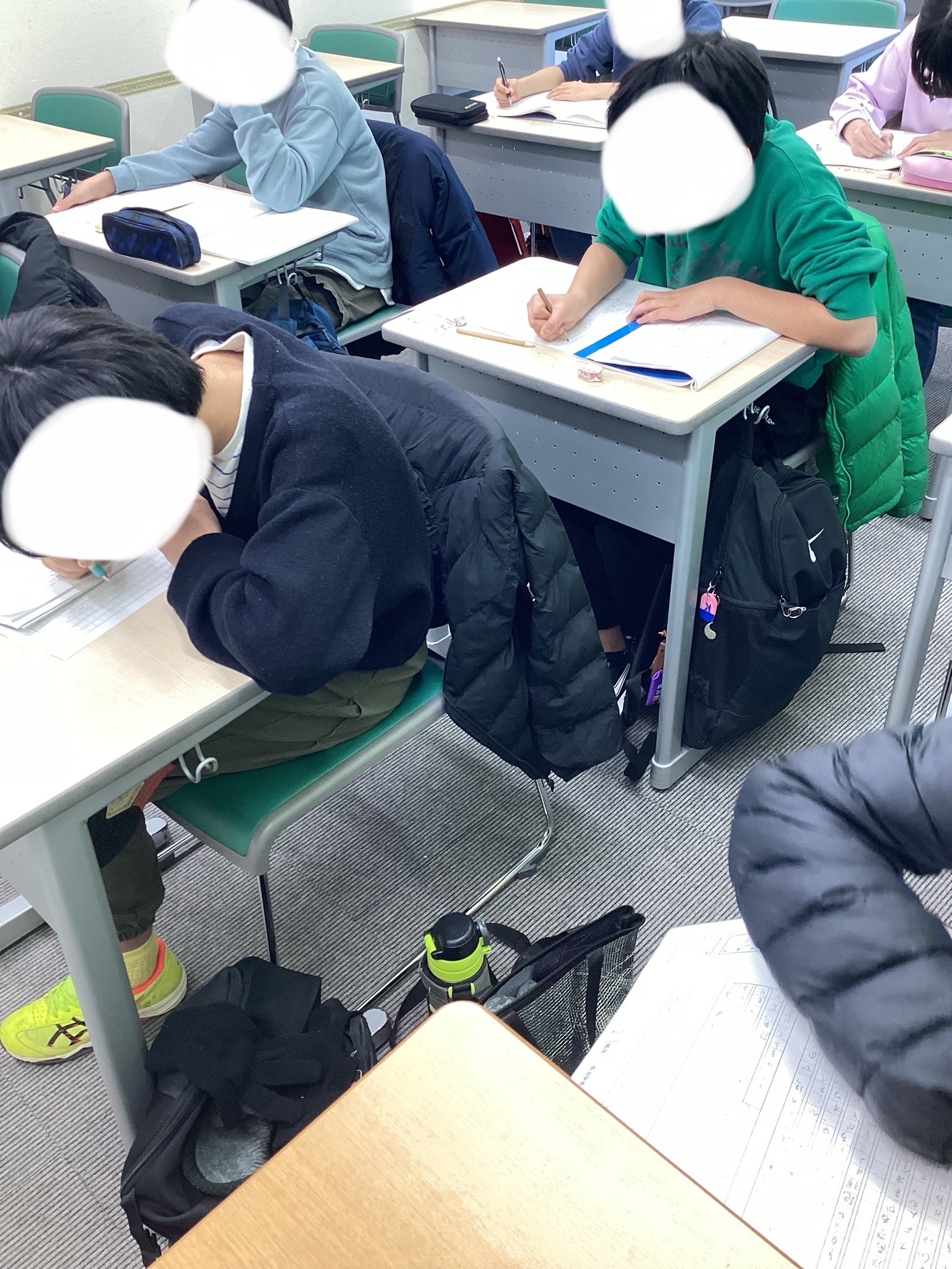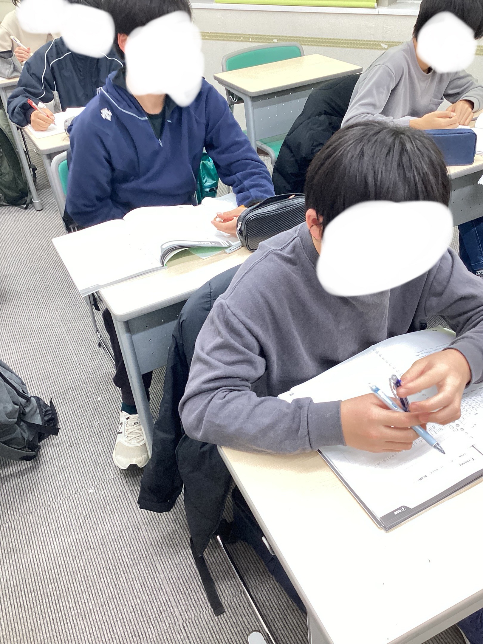 中2では最終日ということで、数学ではこれまでの範囲の総テストを行いました。