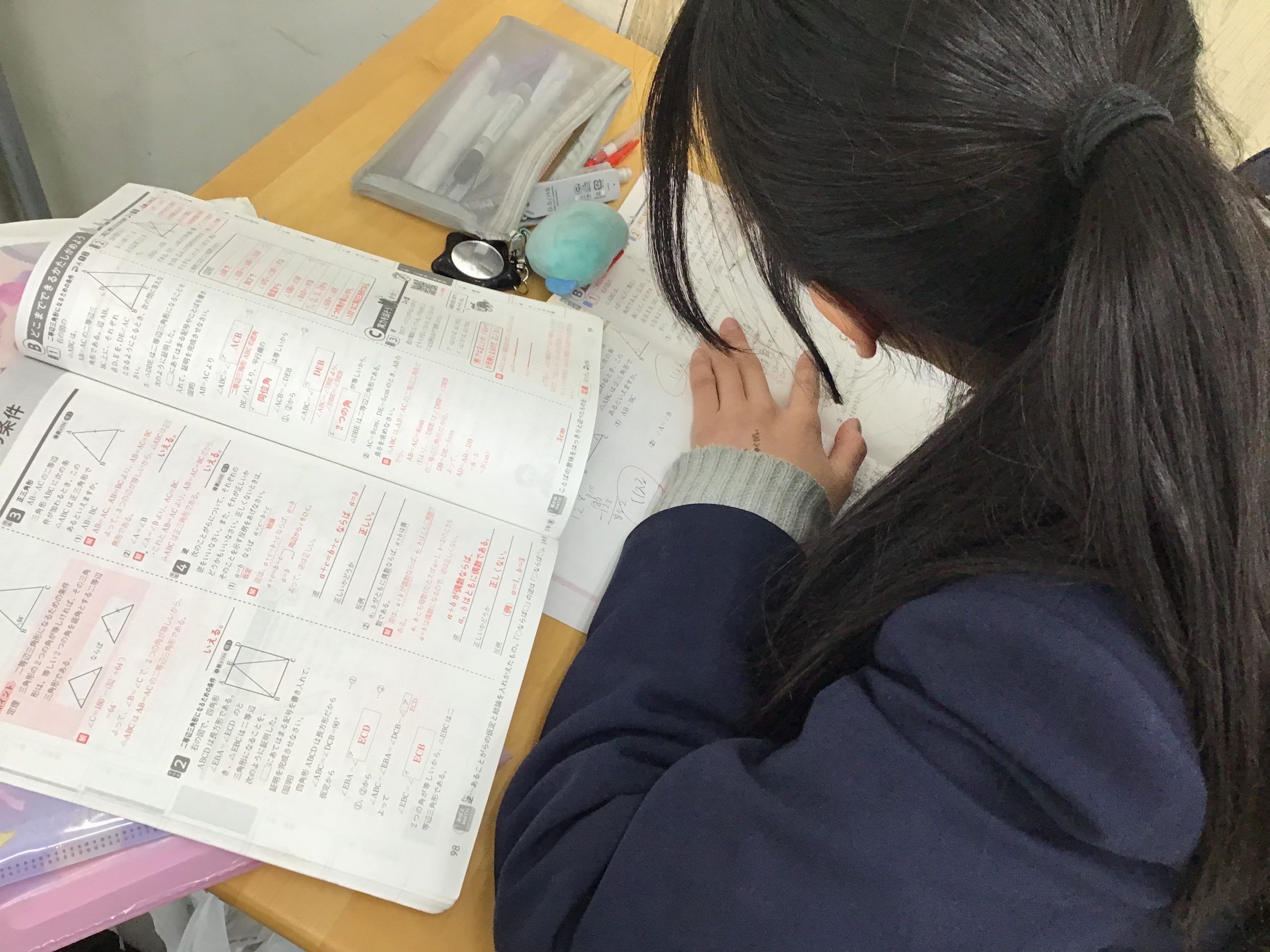 学校で勉強する範囲を先取りして学習しているので、少し難しい内容であると感じている生徒も見られます。そこでわからないからと放っておかずに、頑張ってくらいついて質問をする生徒がたくさんいます。すごく偉いですね!