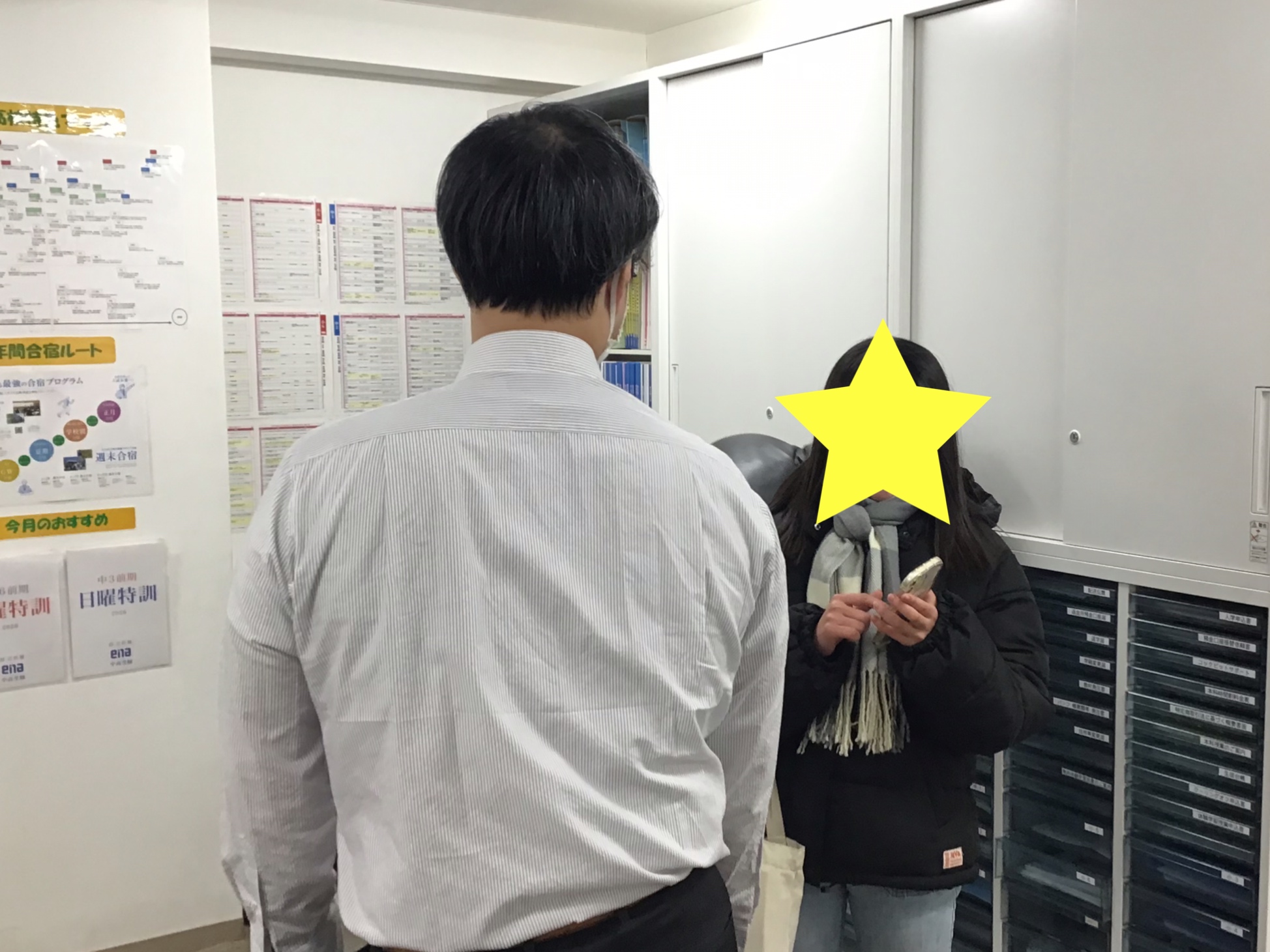 小学生の授業が終わって中学生が塾にやって来る時間に、教室への道に立ちはだかる壁がありました。