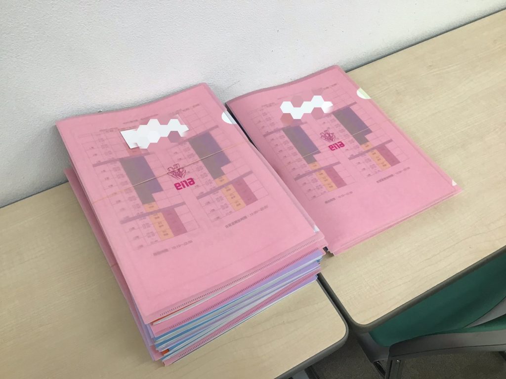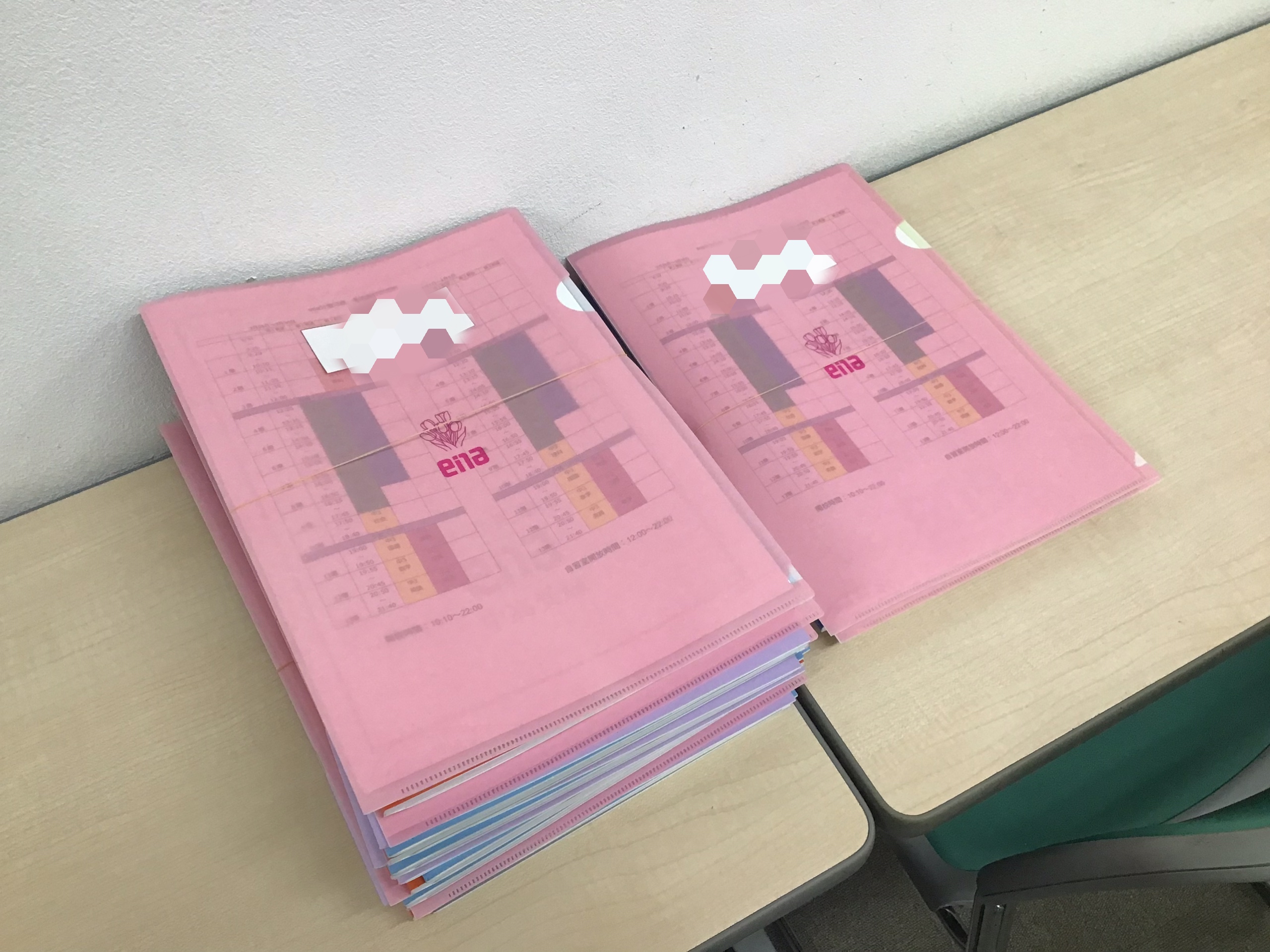 校舎の掲示や配布するテキストの準備を終え、春期講習の準備は万全です。
