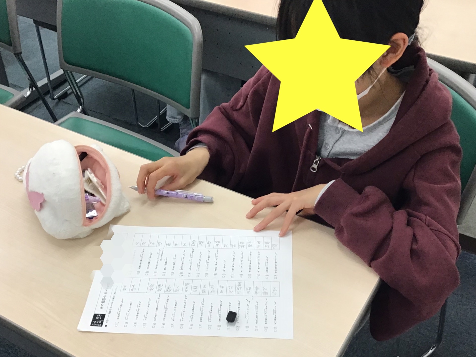 プレテストが終わったら山田のところに持ってきてもらい、採点をします。